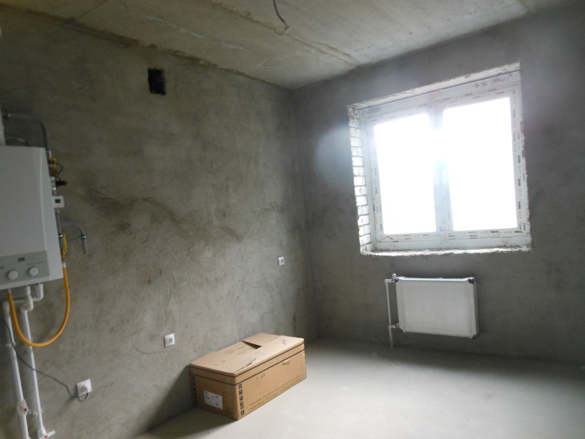 Продается новая квартира с индивидуальным отоплением в кирпичном доме, дом сдан. Выполнена черновая отделка: штукатурка стен, стяжка полов, проведена электрика, установлены батареи, газовый котел. Установлена новая входная дверь. Большие изолированные комнаты 18,3+17,38 кв м., окна ПВХ выходят во двор. Санузел раздельный: ванная 3,3 , туалет 1,7 кв м. На большой лоджии 4,5 кв м. выполнено панорамное остекление. Во дворе детская игровая площадка, рядом - остановка общественного транспорта. Один взрослый собственник. Смотреть- в удобное для вас время.