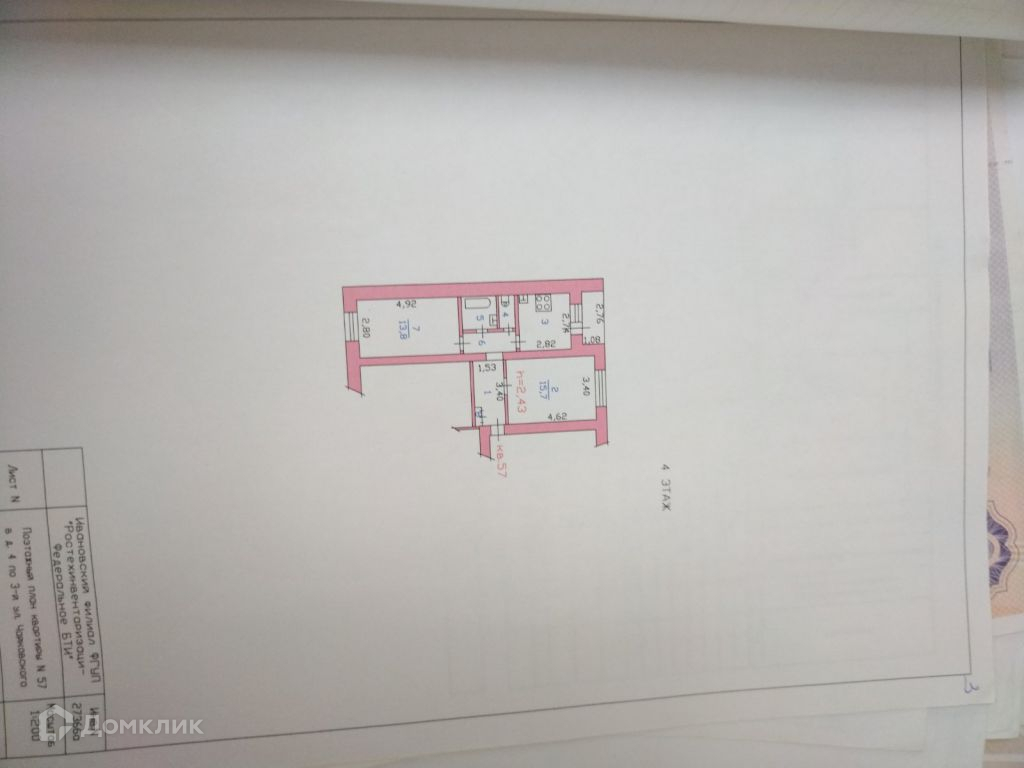2-комнатная квартира, 49.4 м2, этаж 4 / 5, на продажу в Иваново, 3-я улица Чайковского, 4