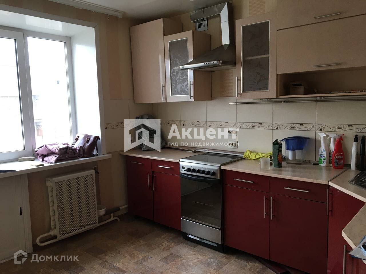 Кухонный гарнитур, плита, кондиционер остаются новым владельцам.