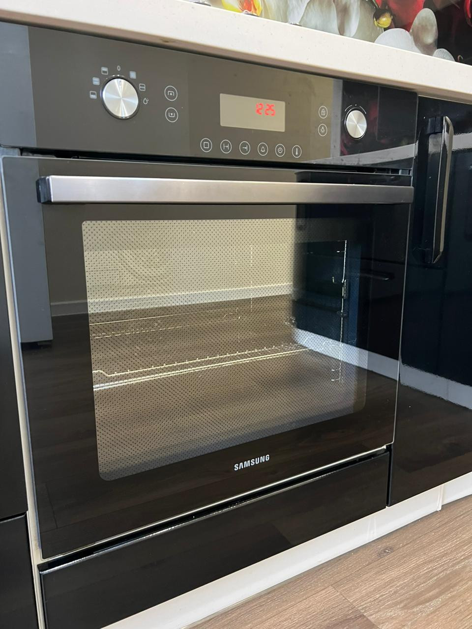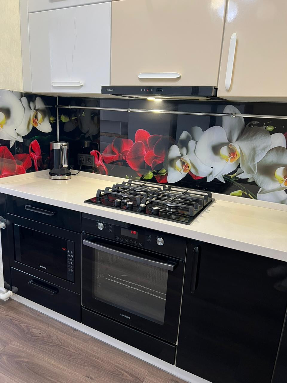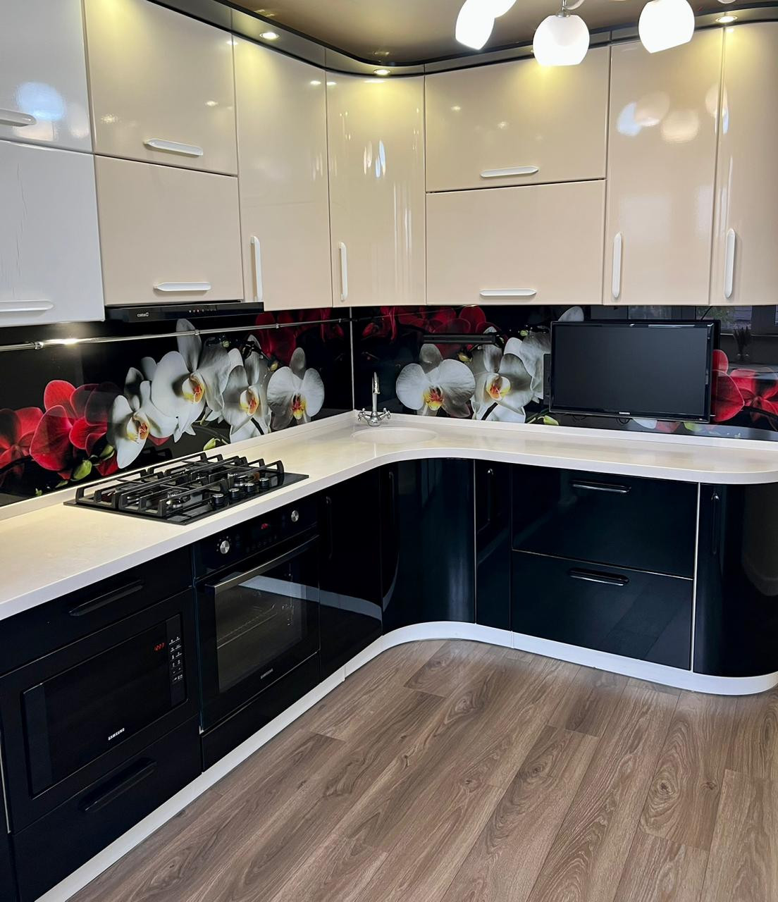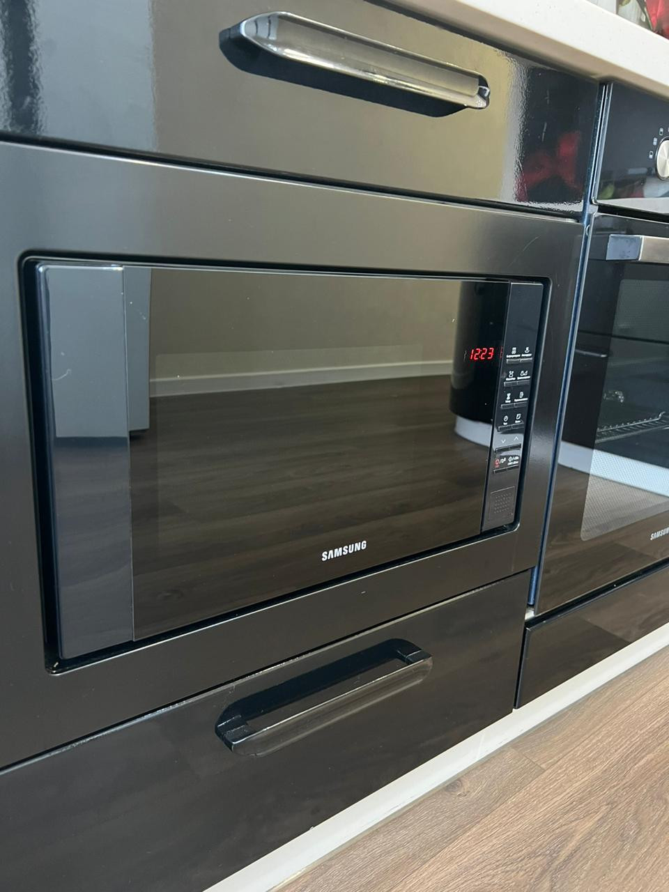 1. Кухонный гарнитур - столешница которого выполнена из искусственного камня с доводчиками фирмы "Blum " и со встроенной техникой "Samsung",
