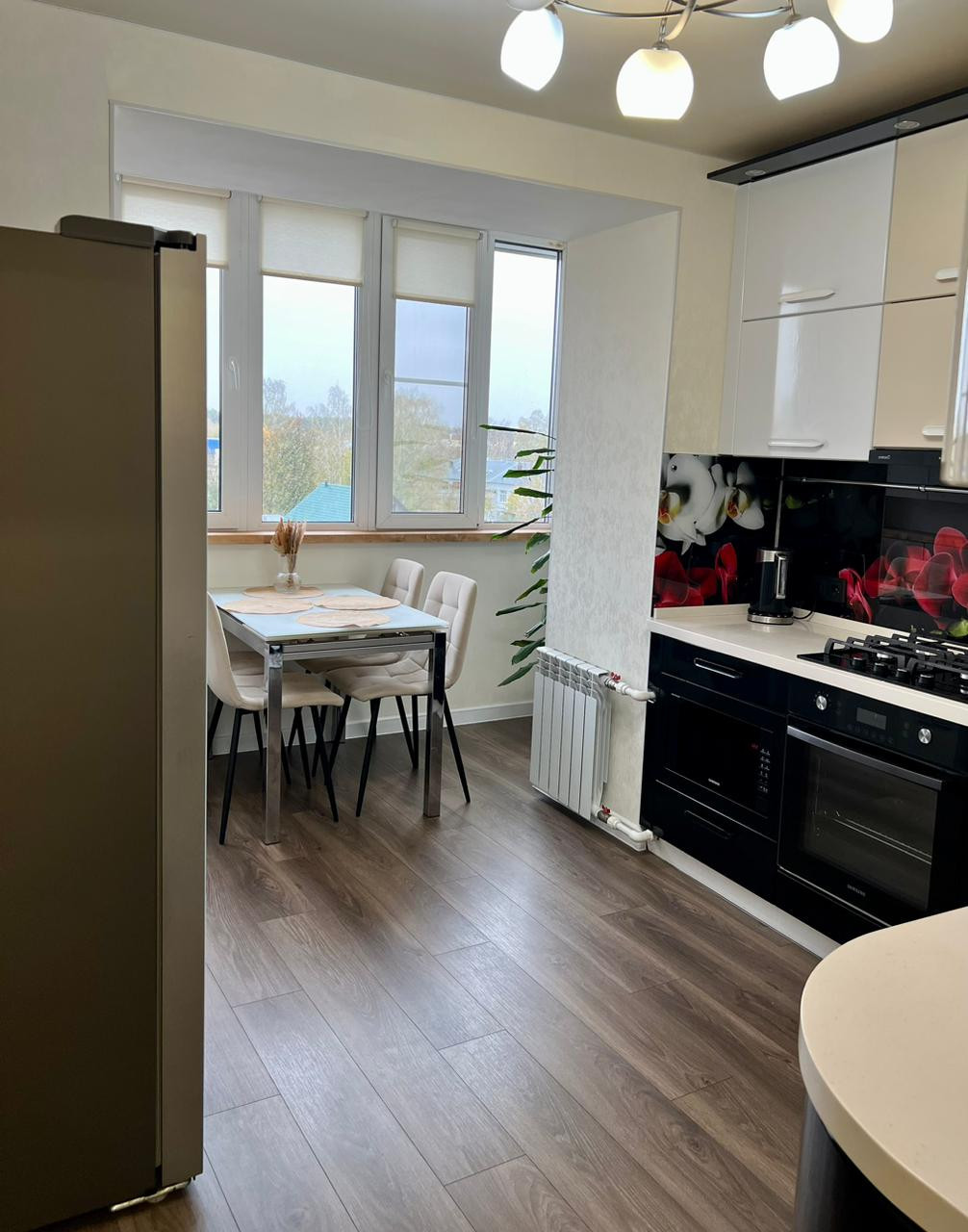 ✔На кухне в зоне стола Установлен Теплый Пол с Регулировкой по часам и дням недели,