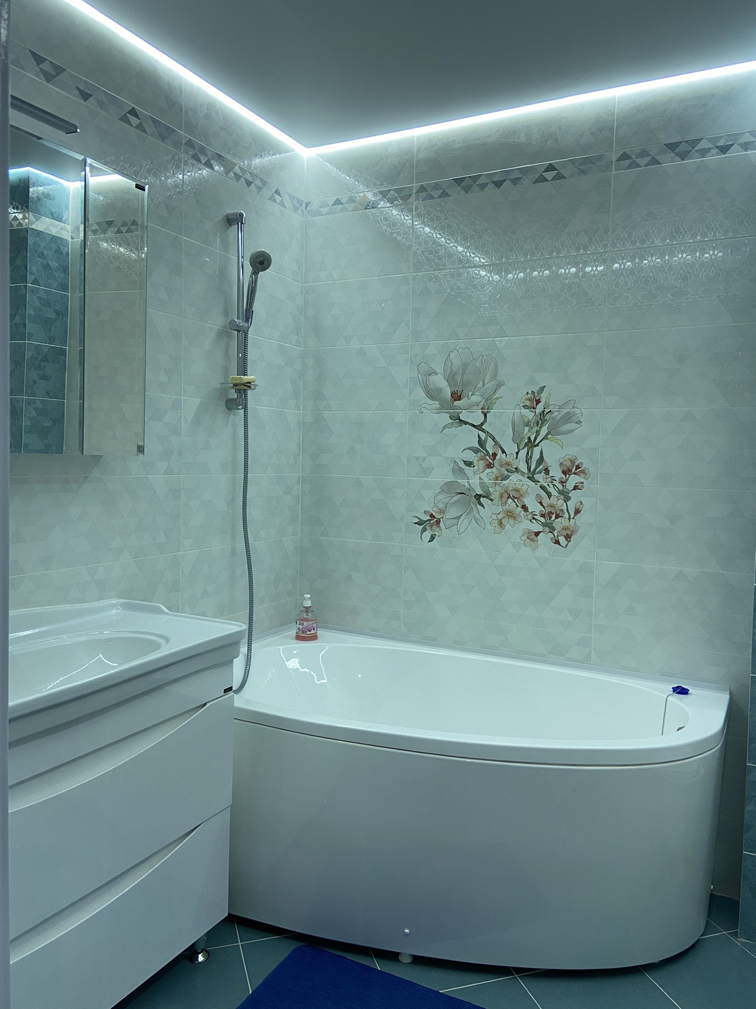 Установлена система "теплые полы" в зоне плитки