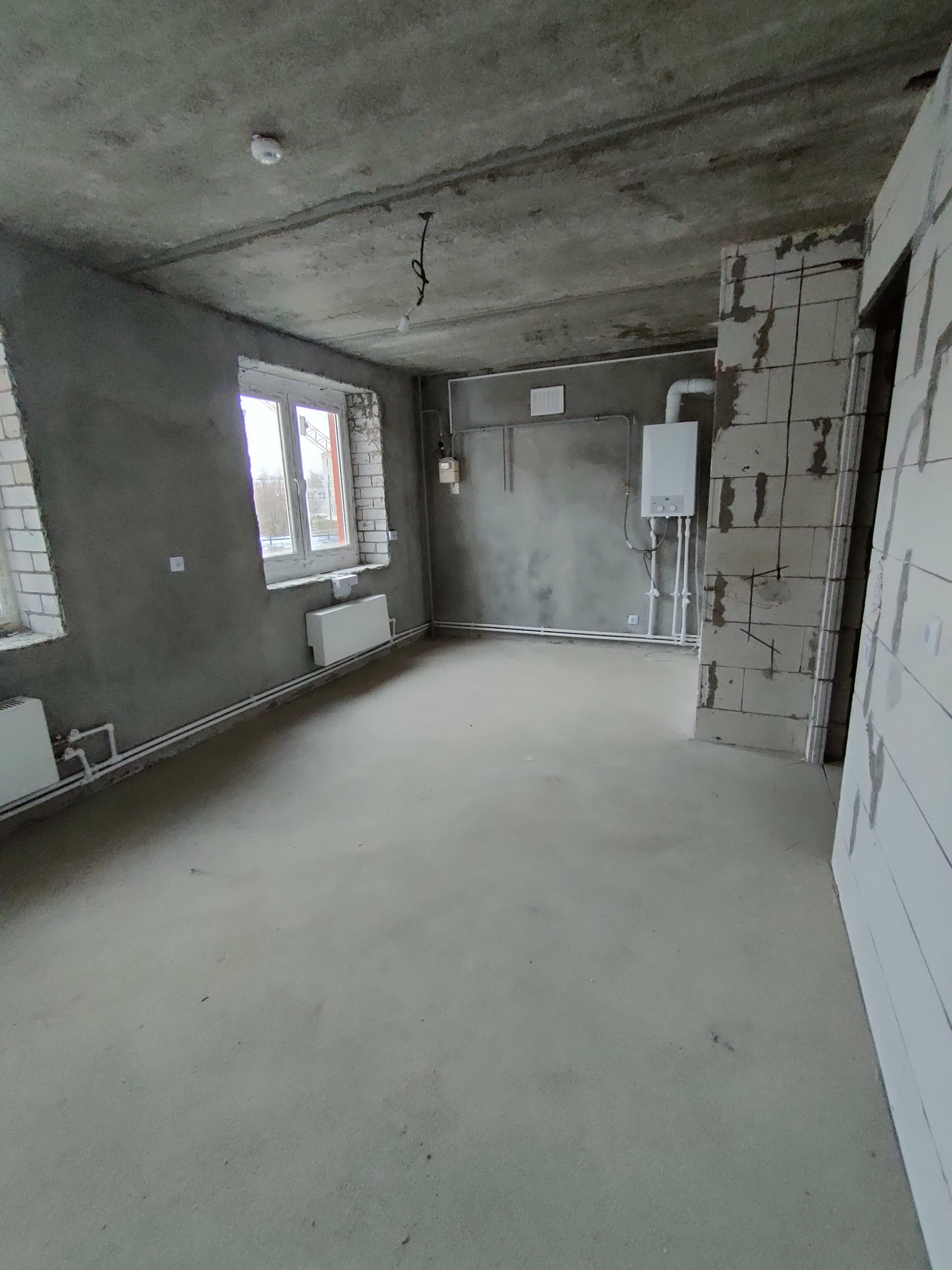 Продам 2 комнатную квартиру (евро-двушка) 1/3, 52,3 м2 кв.№19, в развивающемся спальном районе с черновой отделкой: стяжка, электрика, несущие стены оштукатурены, окна ПВХ, остекленный балкон, квартира с индивидуальным отоплением, газовый котел, газовый счетчик, счетчик на холодную воду установлены, система отопления смонтирована, входная дверь металлическая. В квартире большая кухня-гостиная 19 кв.м. с двумя окнами и выходом на балкон, просторный коридор, есть кладовая (гардеробная).