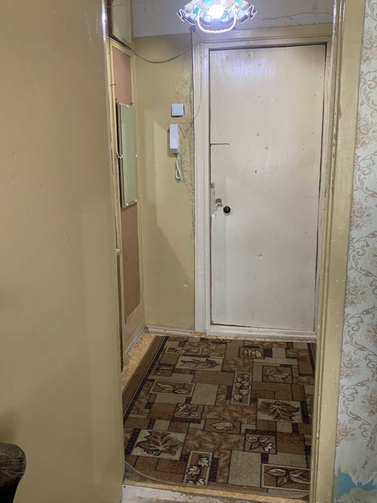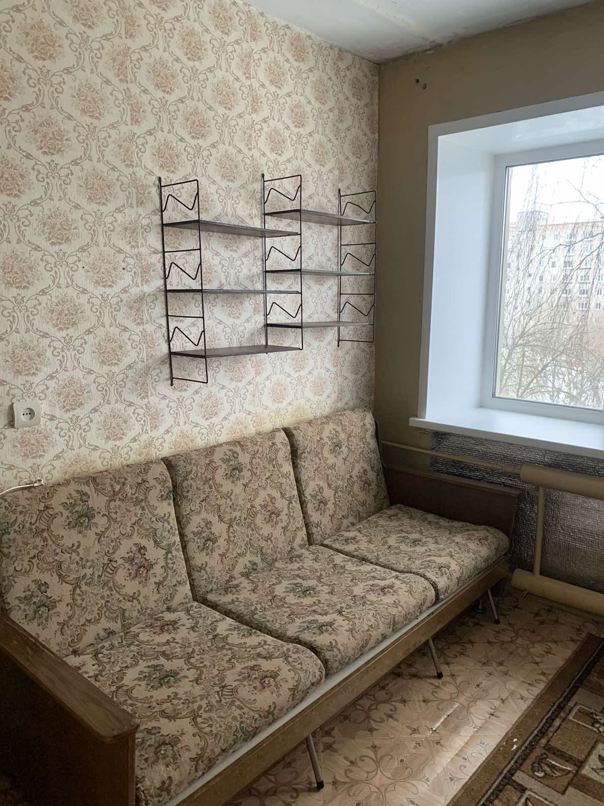продам 1 мс,5/5 кирп.не угловая,окно пвх,есть свой туалет и душ,13,4/8.2,сост.обычное,остается мебель обычная и холодильник