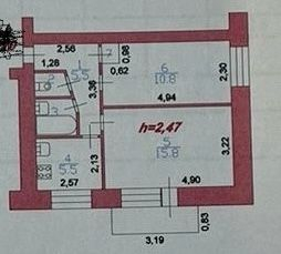 Жилая площадь 26.6 м2
