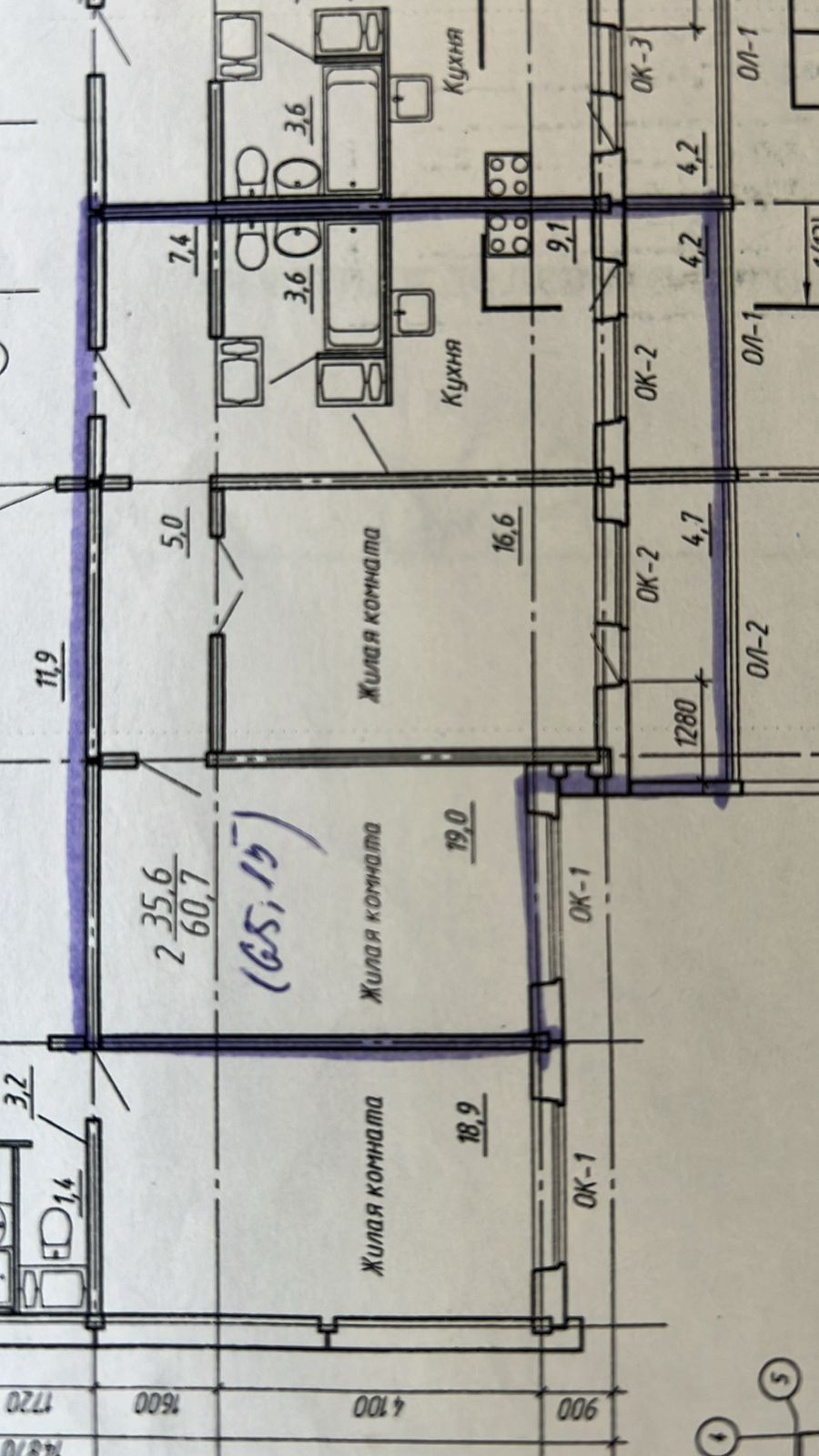 Жилая площадь 35.6 м2
