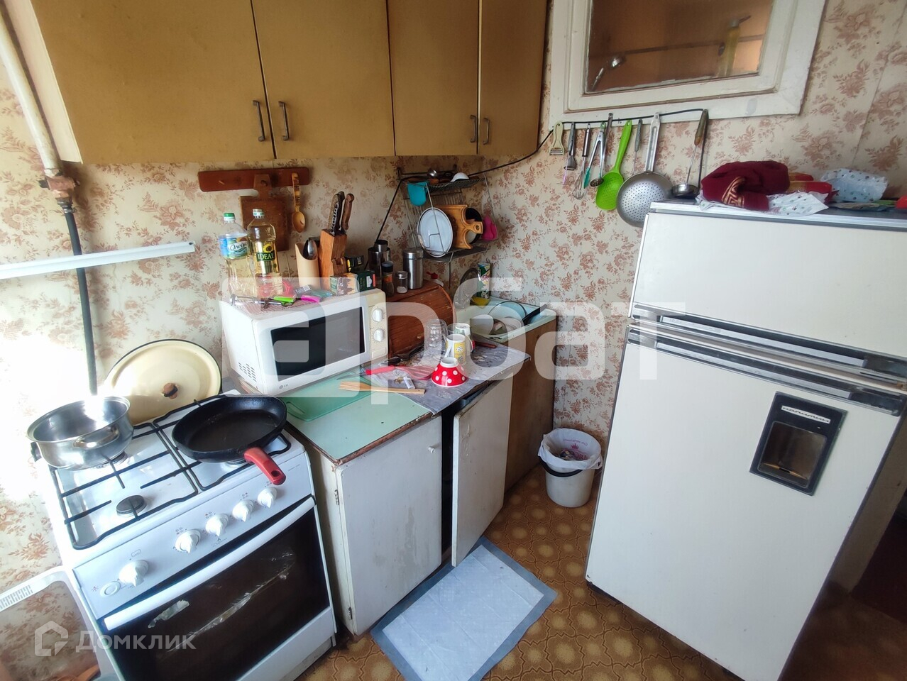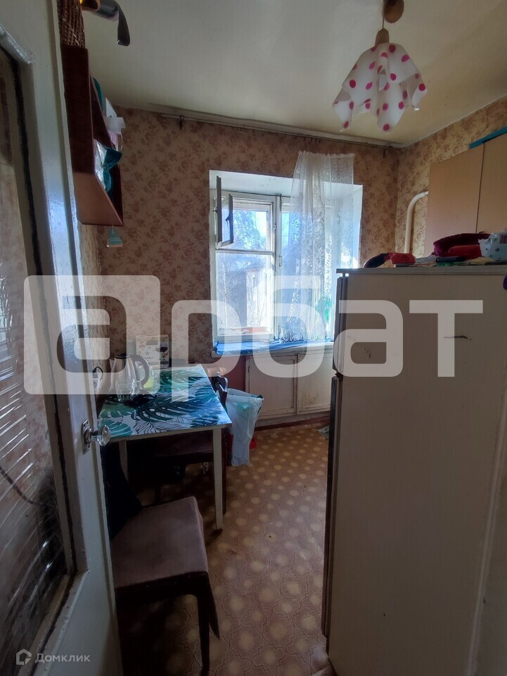 Квартира расположена на 5 этаже 5-этажного кирпичного дома и состоит из кухни, комнаты, совмещенного санузла. Квартира требует ремонта. Остекление деревянное, одно окно в комнате ПВХ, вид из окон во двор и на юг.