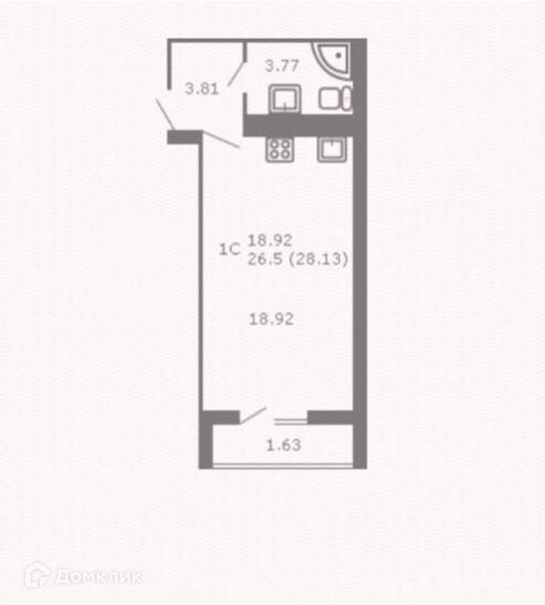 - Общая площадь 26.8 кв.м.
