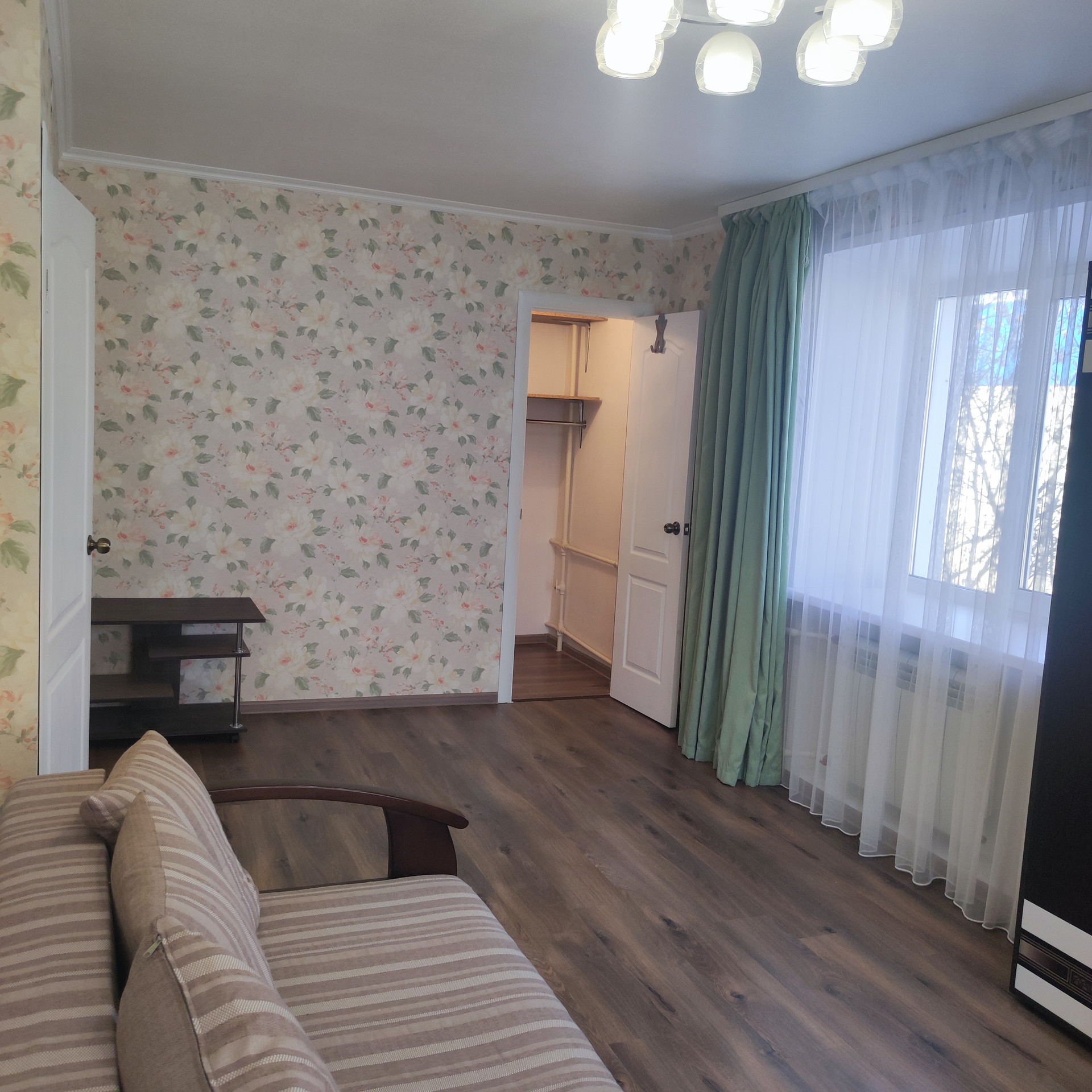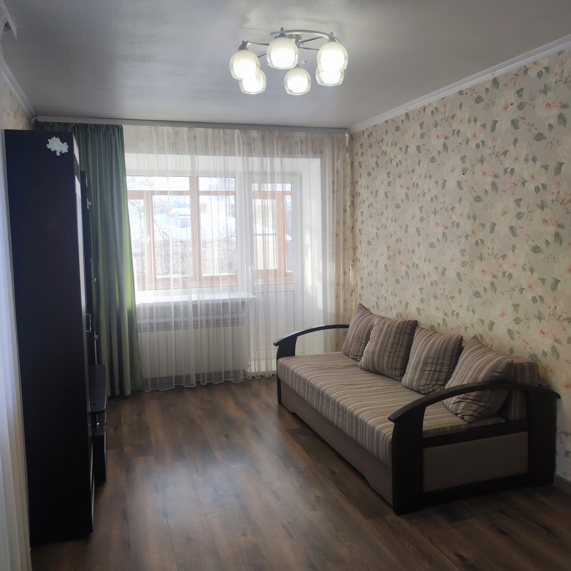 Без дополнительной оплаты в квартире остается вся мебель, что вы видите на фото: кухонный гарнитур, стенка в комнате, диван, а также мебель в ванной, люстры. Чистый подъезд. У дома закрытая территория.