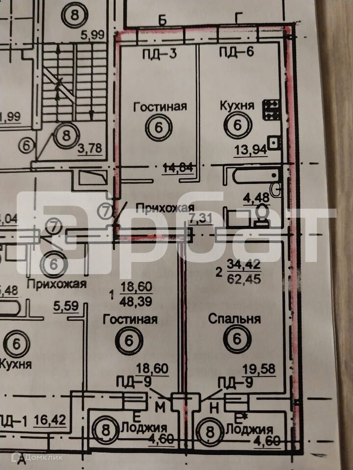 Общая площадь 64.8 м2