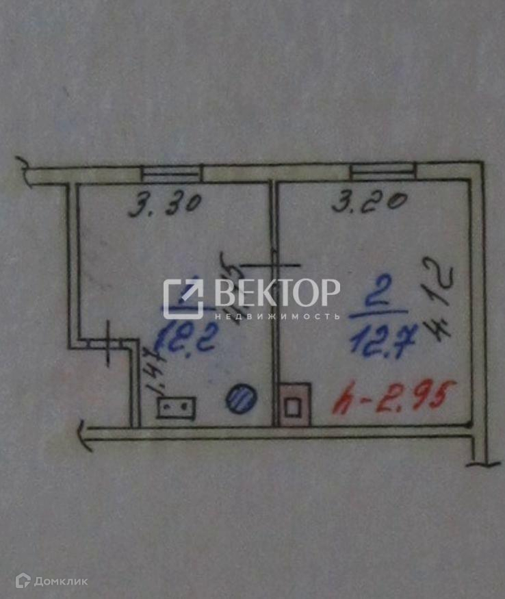 Жилая площадь 12.7 м2