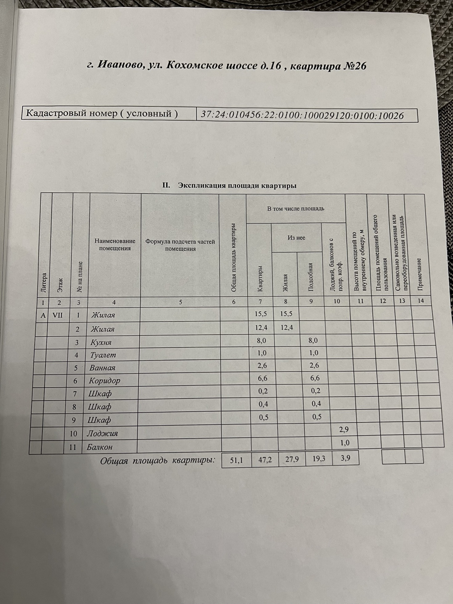 Общая площадь 51.1 м2