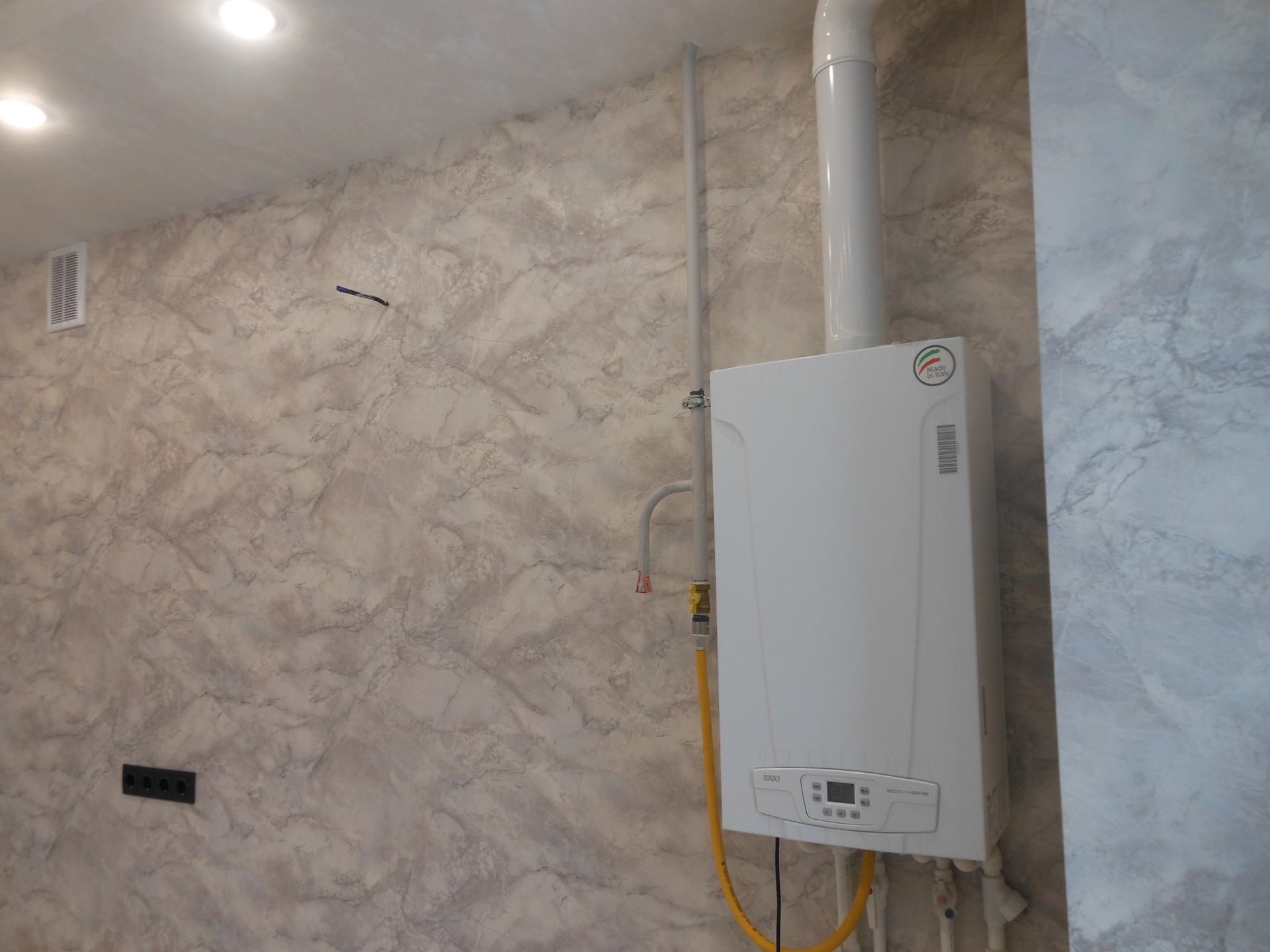 -на кухне установлен газовый котел Baxi; счетчики: газовый, электрический и на водоснабжение.
