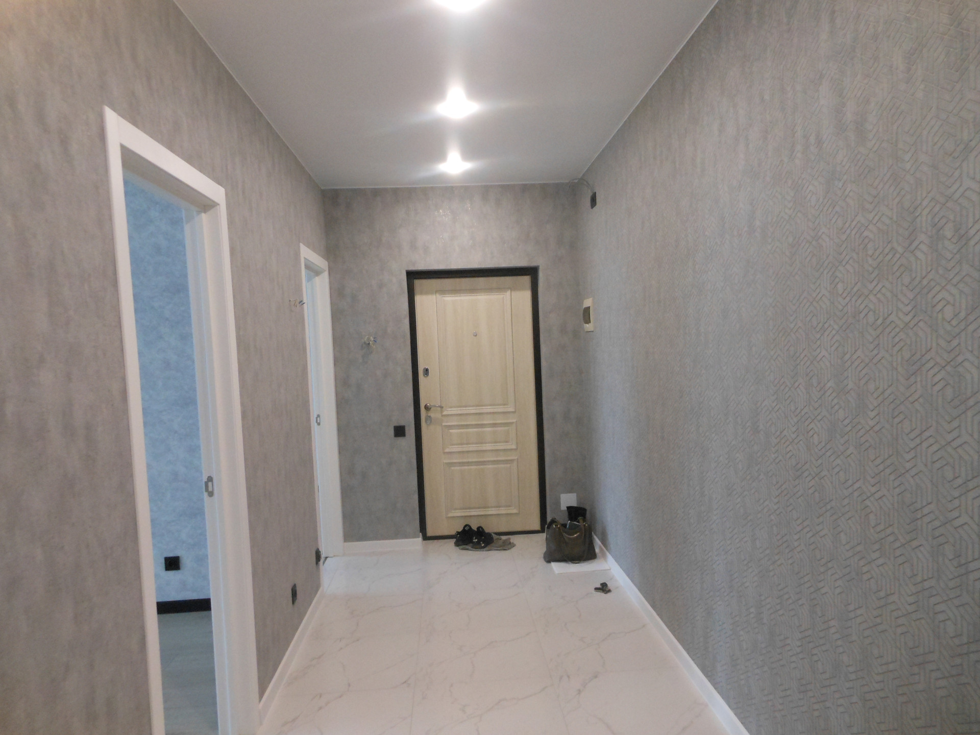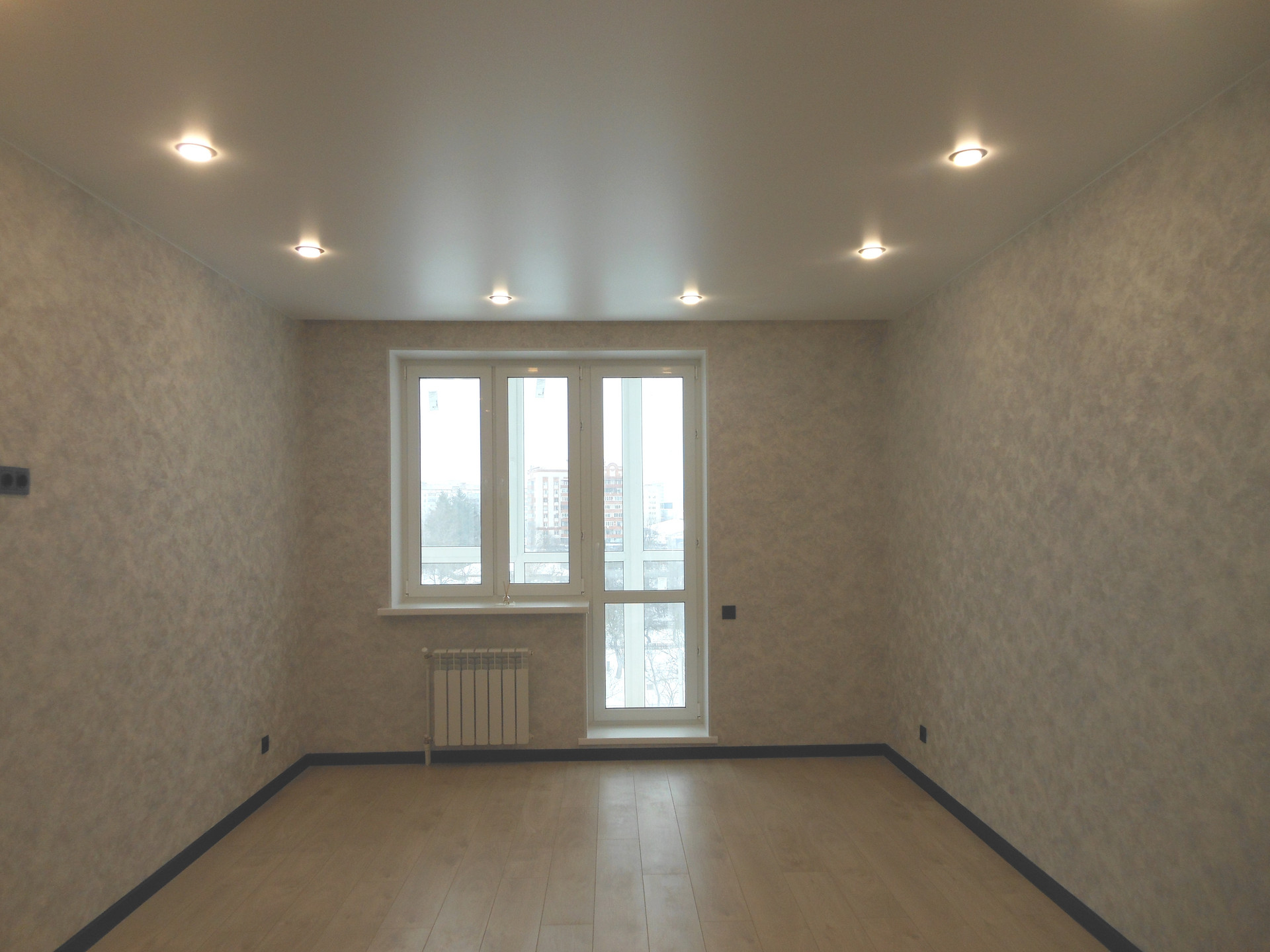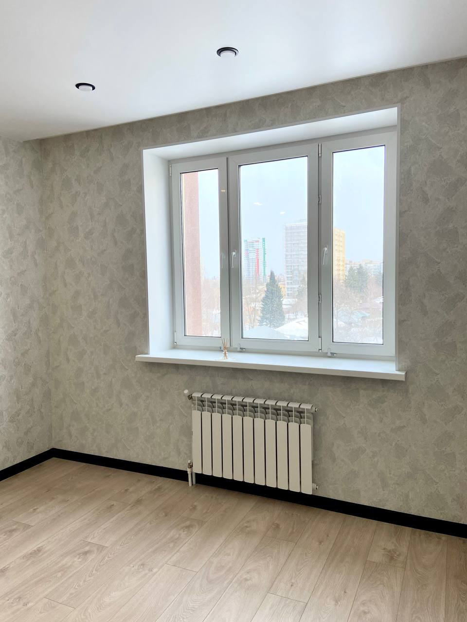 - Квартира с хорошим ремонтом: сделаны теплые полы (от системы отопления) в коридоре, на кухне, в санузле и ванной комнате; стены оклеены красивыми обоями, натяжные потолки с точечными светильниками, полы -  керамогранит и ламинат; окна ПВХ, все современно и стильно.