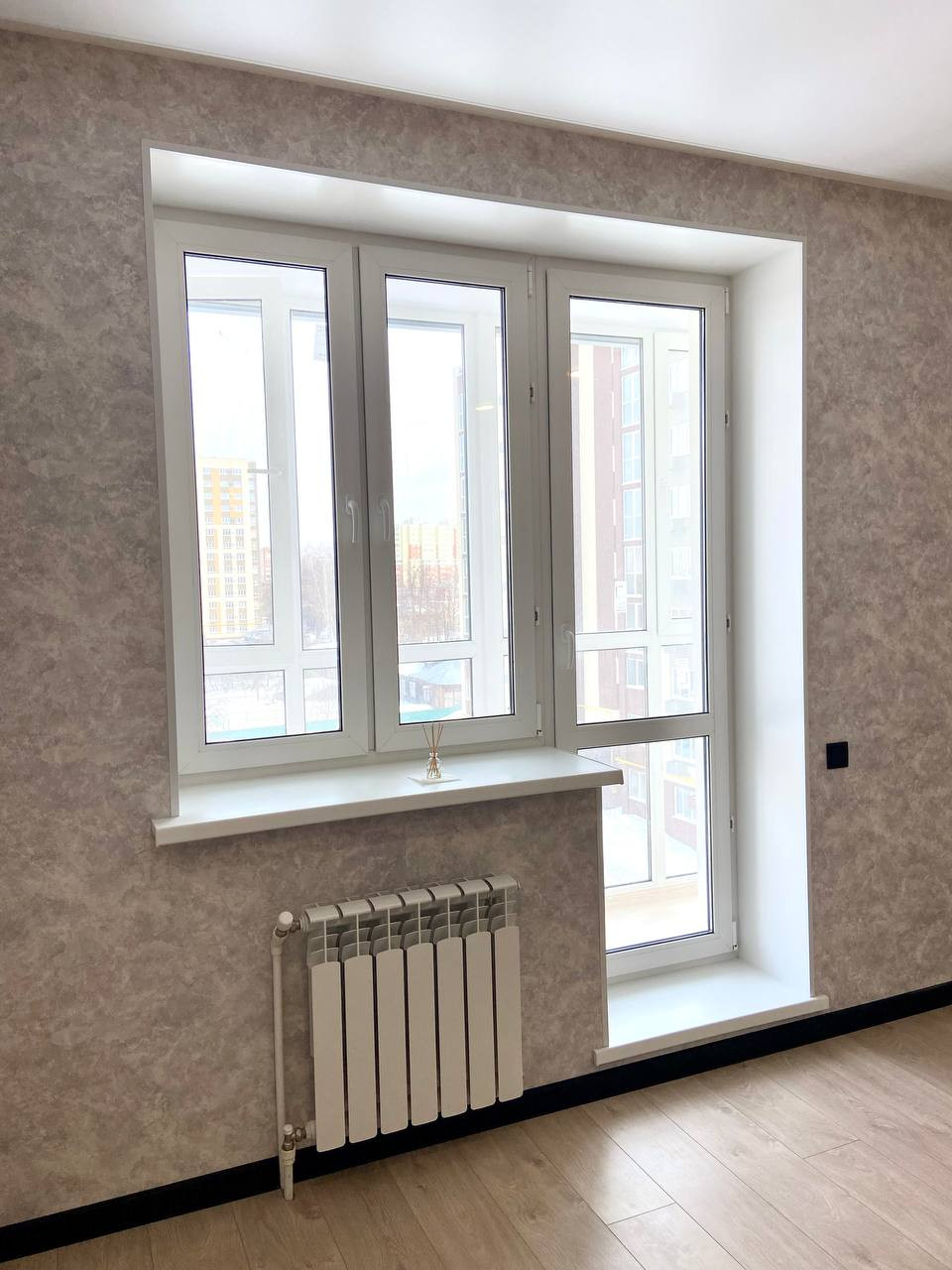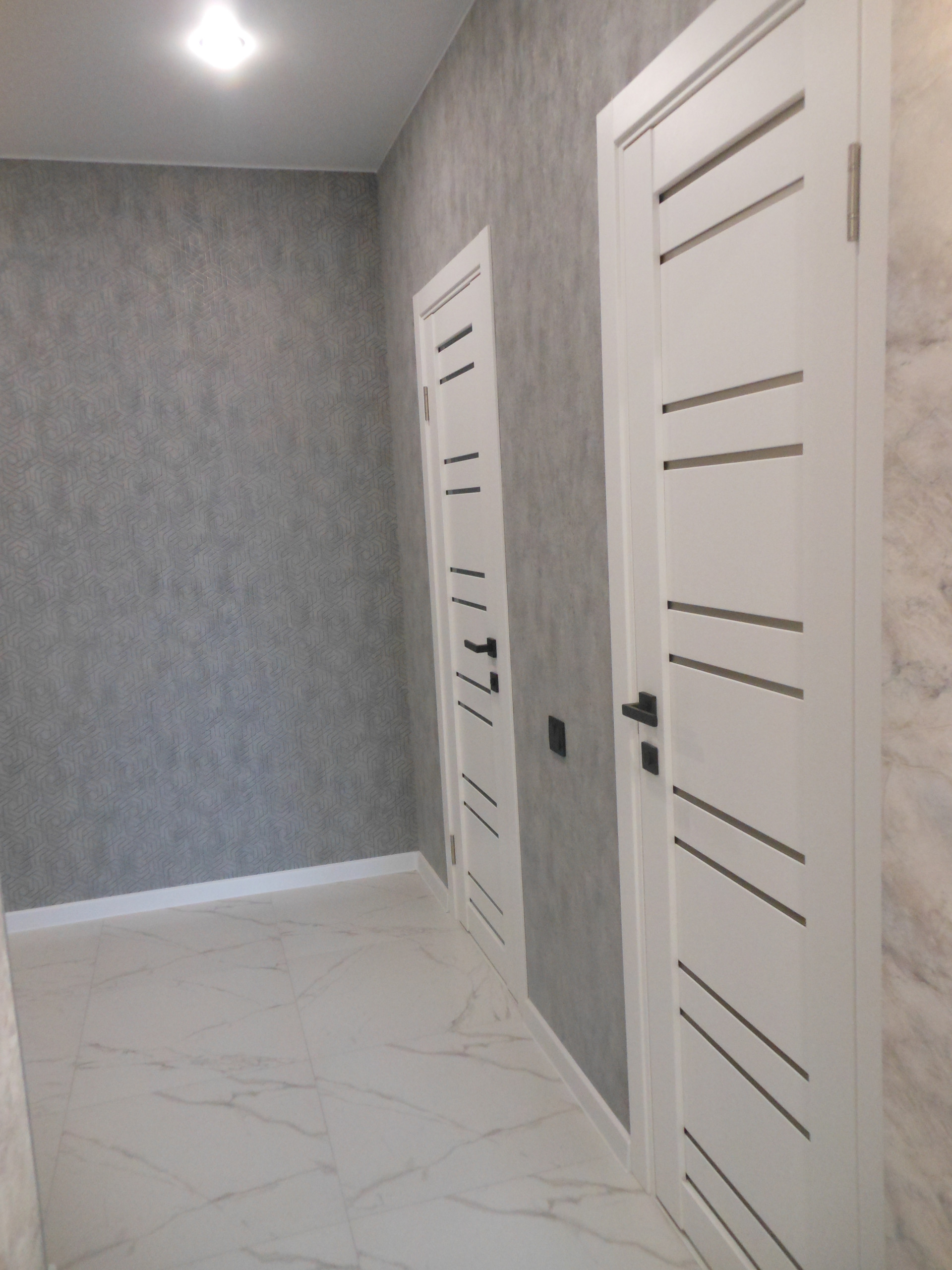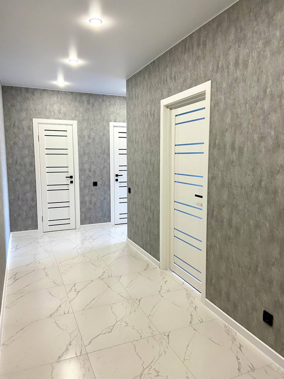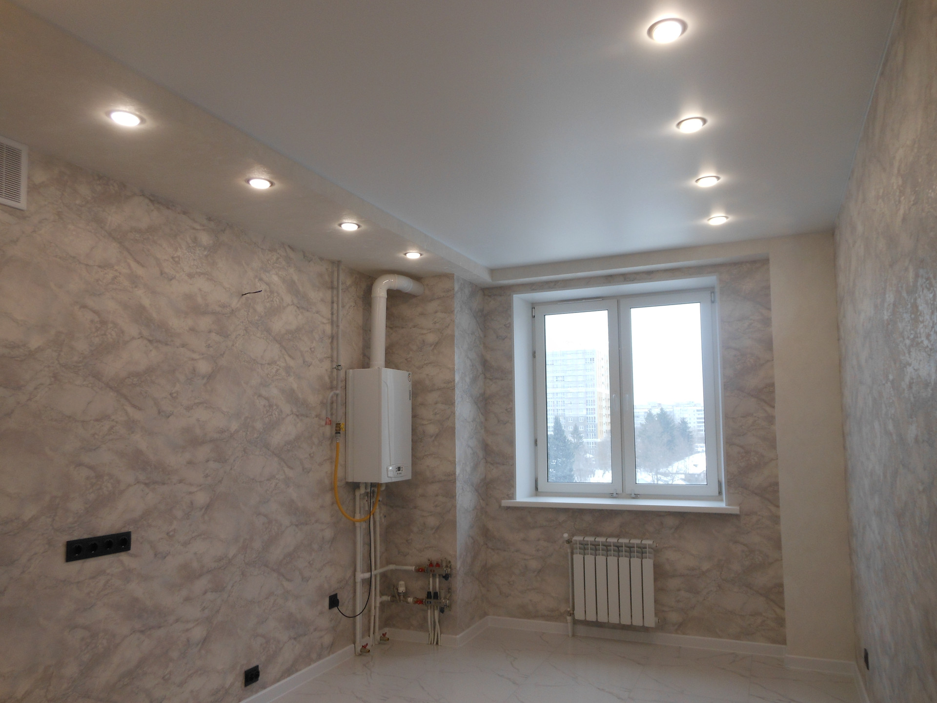 - Квартира с хорошим ремонтом: сделаны теплые полы (от системы отопления) в коридоре, на кухне, в санузле и ванной комнате; стены оклеены красивыми обоями, натяжные потолки с точечными светильниками, полы -  керамогранит и ламинат; окна ПВХ, все современно и стильно.