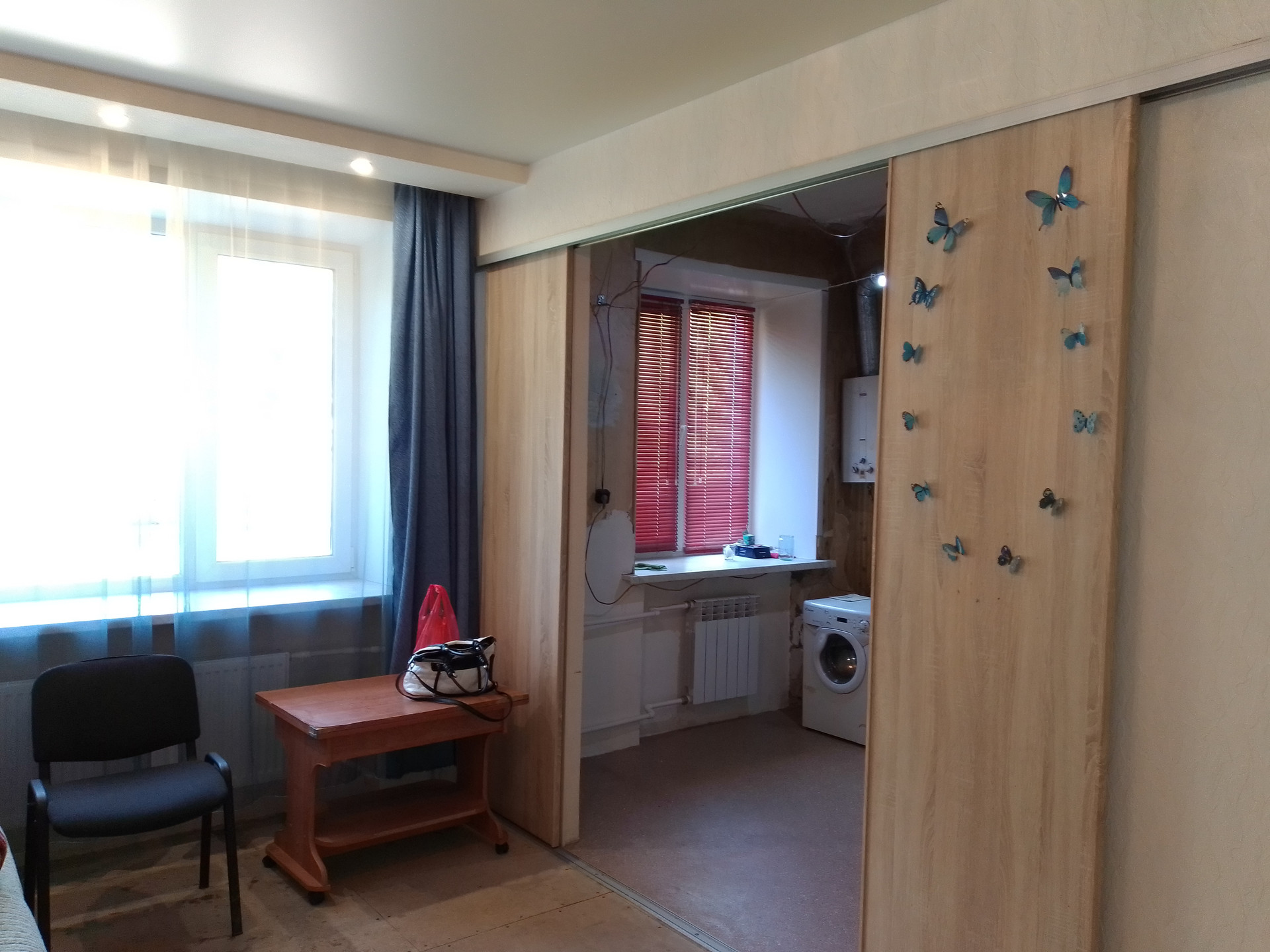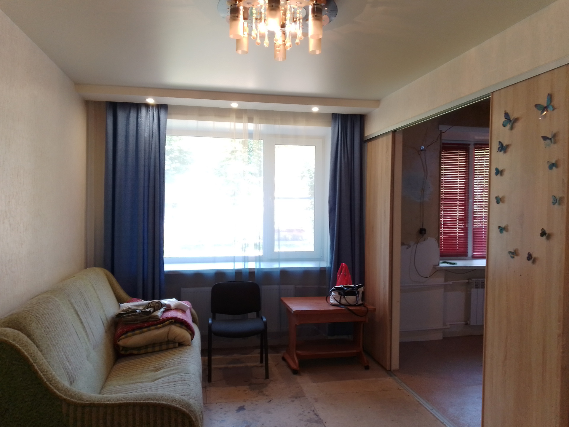 Жилая площадь составляет 28 квадратных метров, комнаты изолированные, а кухня занимает 6 квадратных метров. В квартире выполнен капитальный ремонт пола, с керамзитной подушкой и заливкой бетоном. Новая проводка, система отопления, новая сантехника. Межкомнатные двери новые, в том числе - раздвижные. Выполнен косметический ремонт в комнатах. Начат ремонт в санузле и кухне. Санузел совмещённый, что является удобным решением для экономии пространства.