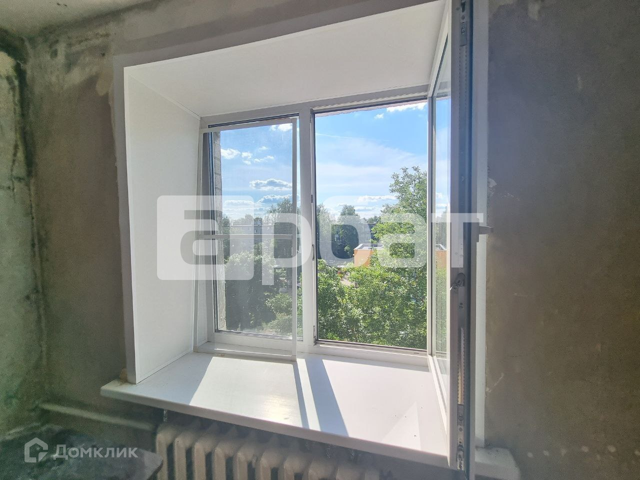 Квартира в середине дома, теплая и светлая, окна выходят во двор, вид на деревья и детский садик.