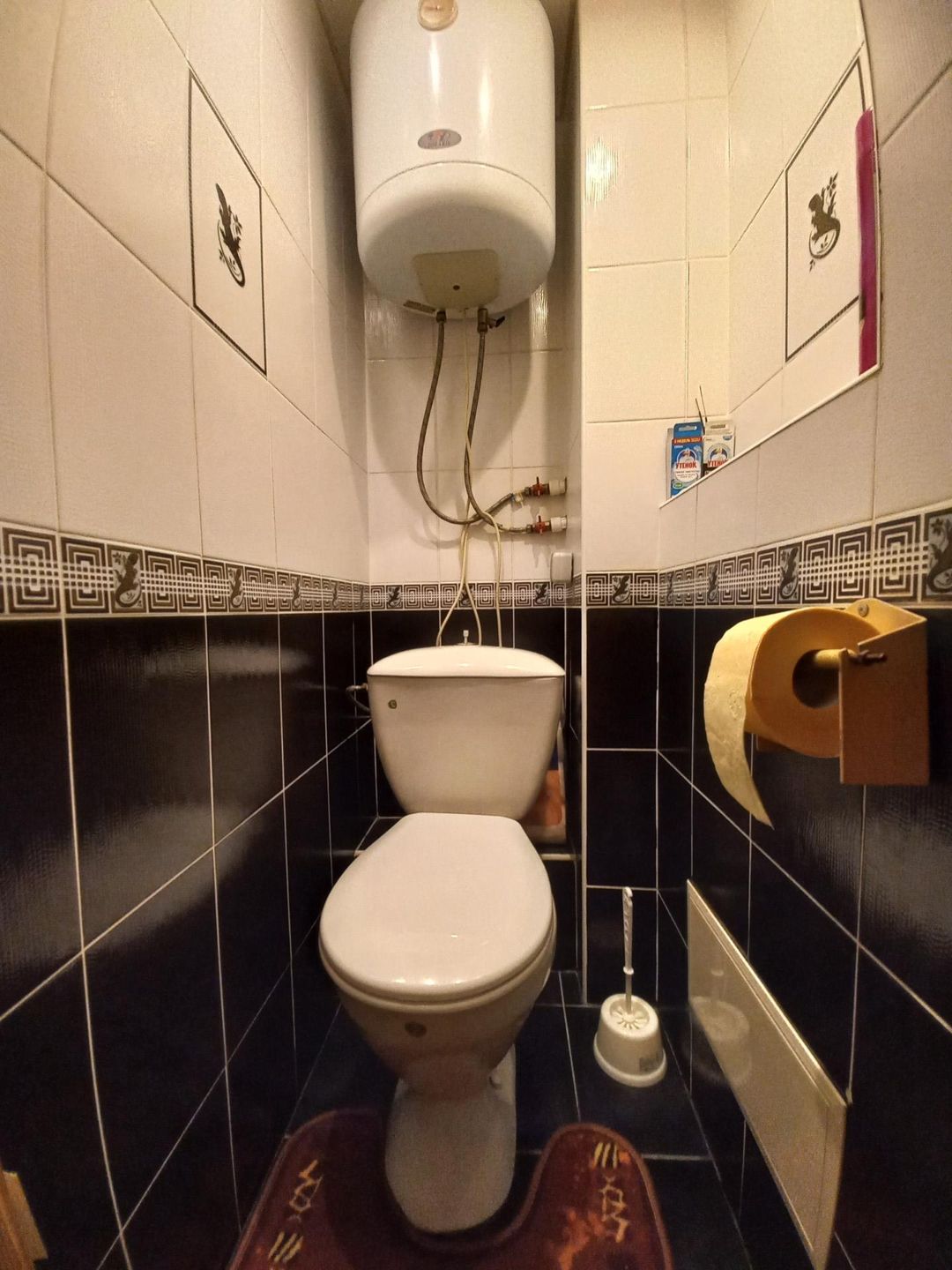 Санузел раздельный в кафеле, установлен бойлер на случай оприсовки