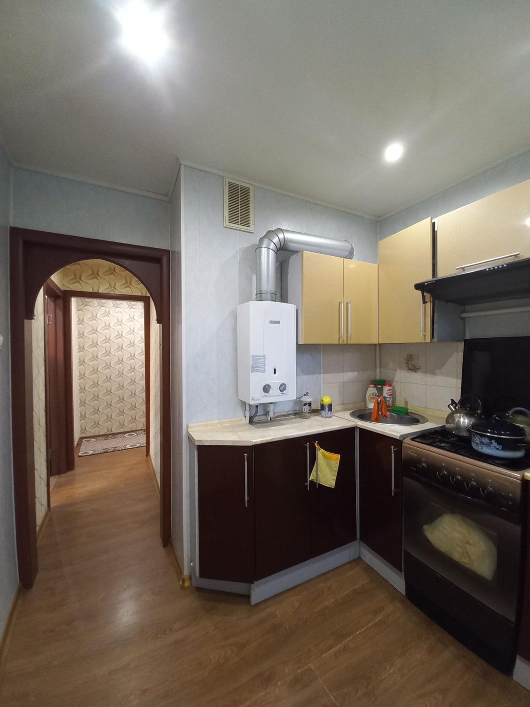 Все коммуникации центральные, горячая вода через газовую колонку