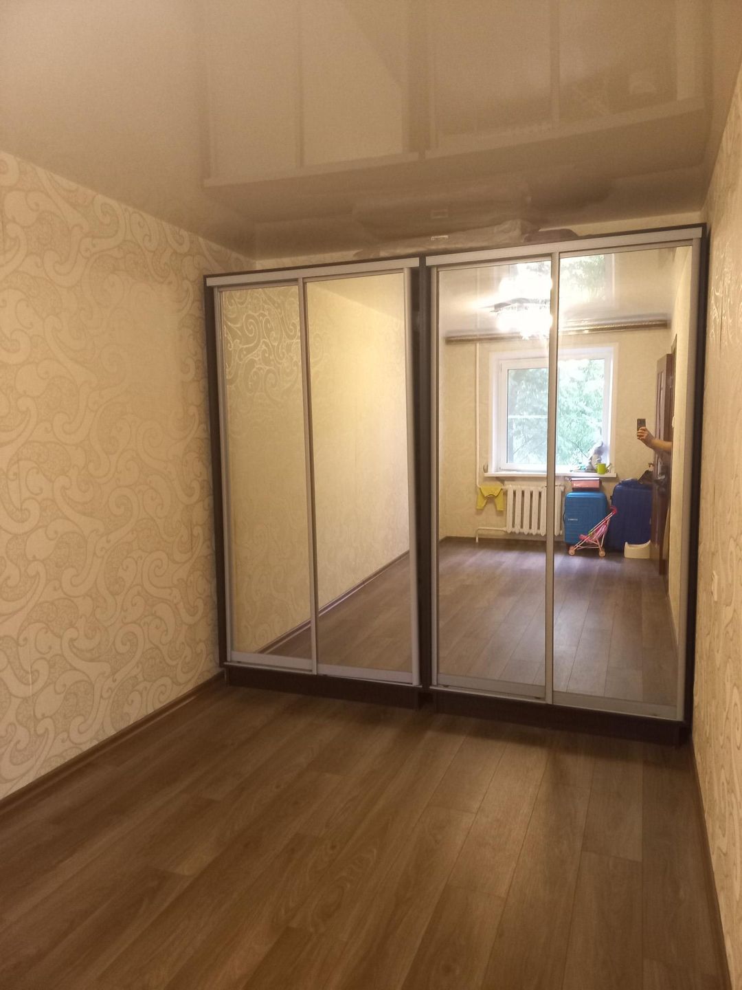 При продаже остается кухонный гарнитур, стиральная машина, зеркальный шкаф-купе
