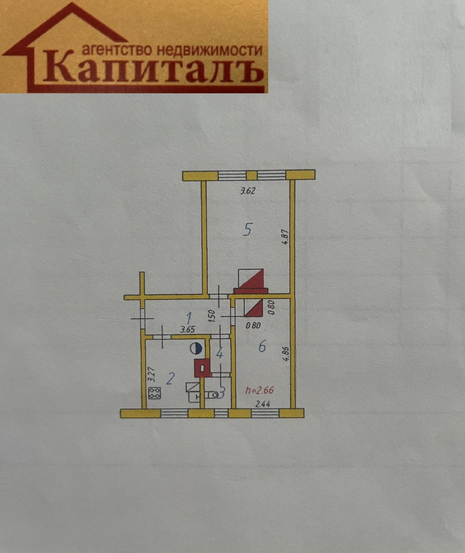 Жилая площадь 27.7 м2