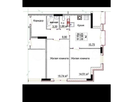 Общая площадь 60 м2