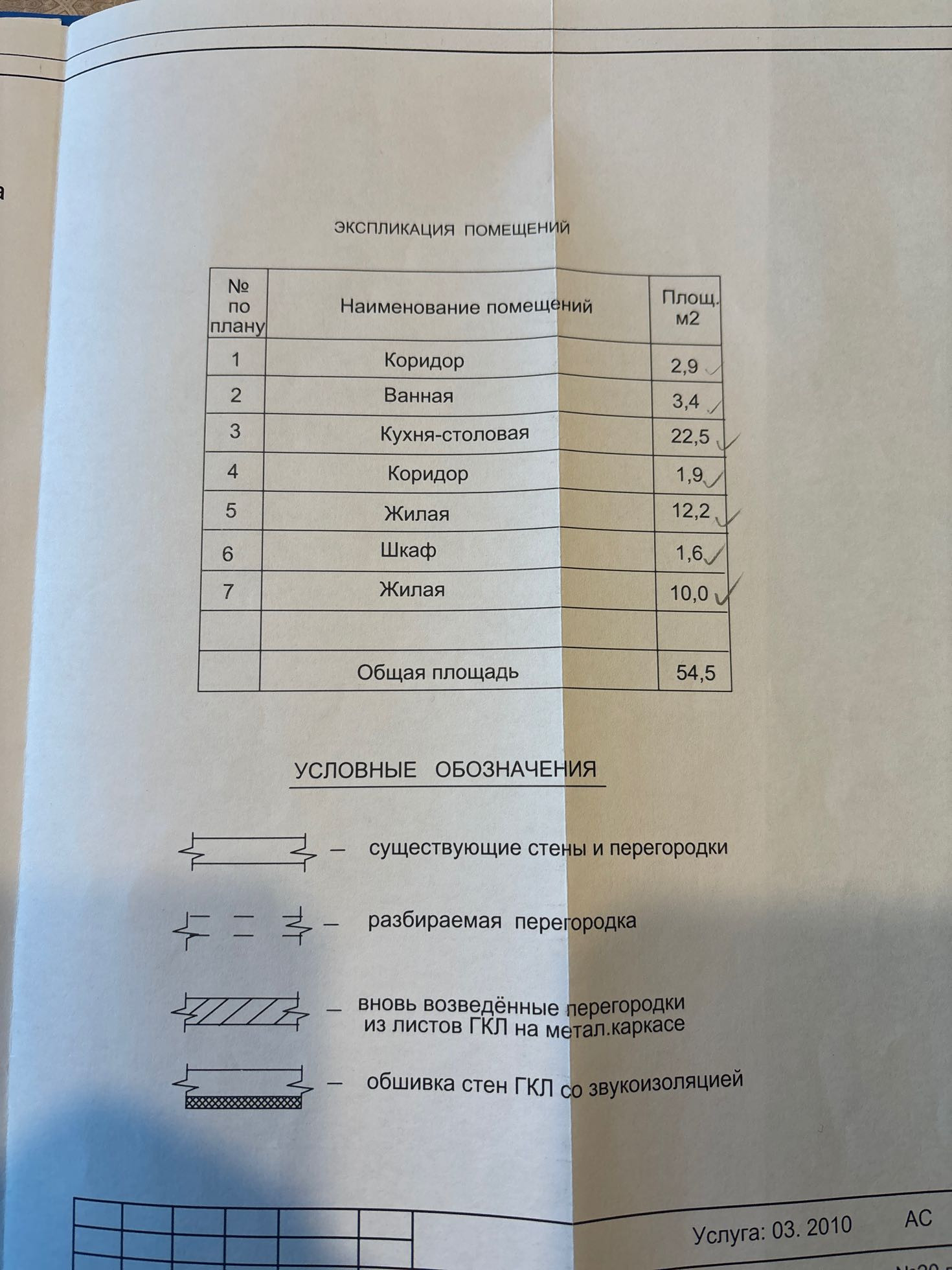 Общая площадь 54.5 м2