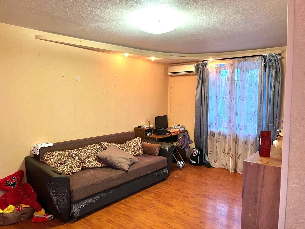 Квартира в собственности, один взрослый собственник. Теплая не угловая. Качественный ремонт. В комнатах ламинат. На кухне, в санузеле и коридоре плитка. Квартира перепланирована и переустроена.перепланировка узаконена. Холодильник , кухонный гарнитур,газовая плита, встроенный шкаф купе.окна во двор и на улицу. Балкон застеклен и отделан.во дворе детская площадка. Рядом школа, детские сады. Парк. Магазины.тихий уютный район.