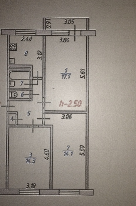 Высота потолков 2.5 м