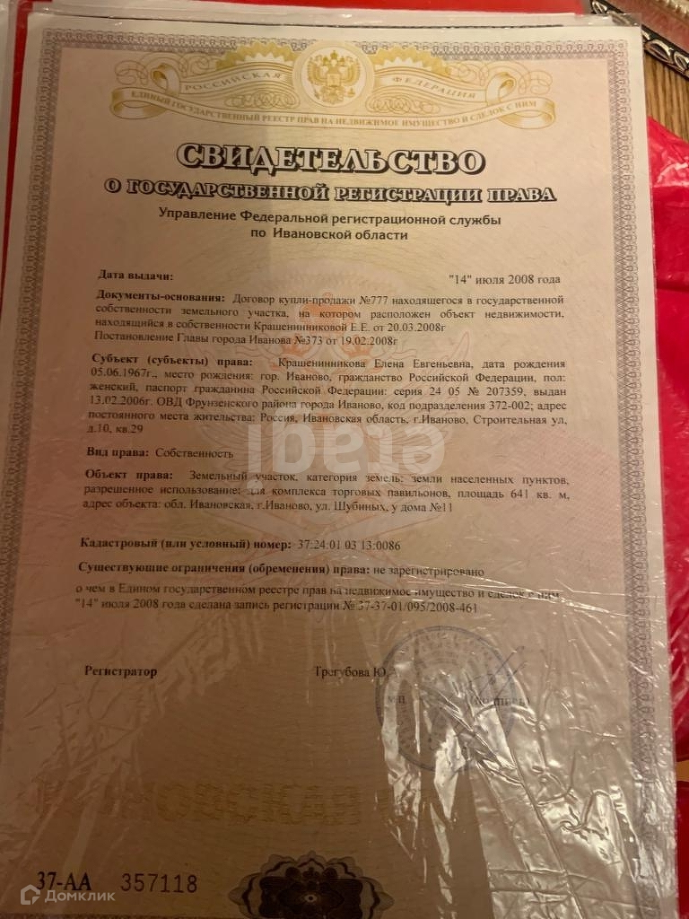 Земля под павильоном в собственности, площадь земельного участка 641 м2. Действующий бизнес, приносящий доход. В данное время торговые помещения сдаются в аренду.