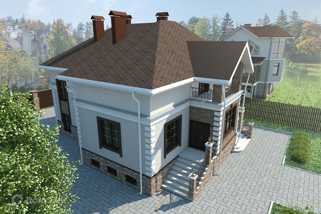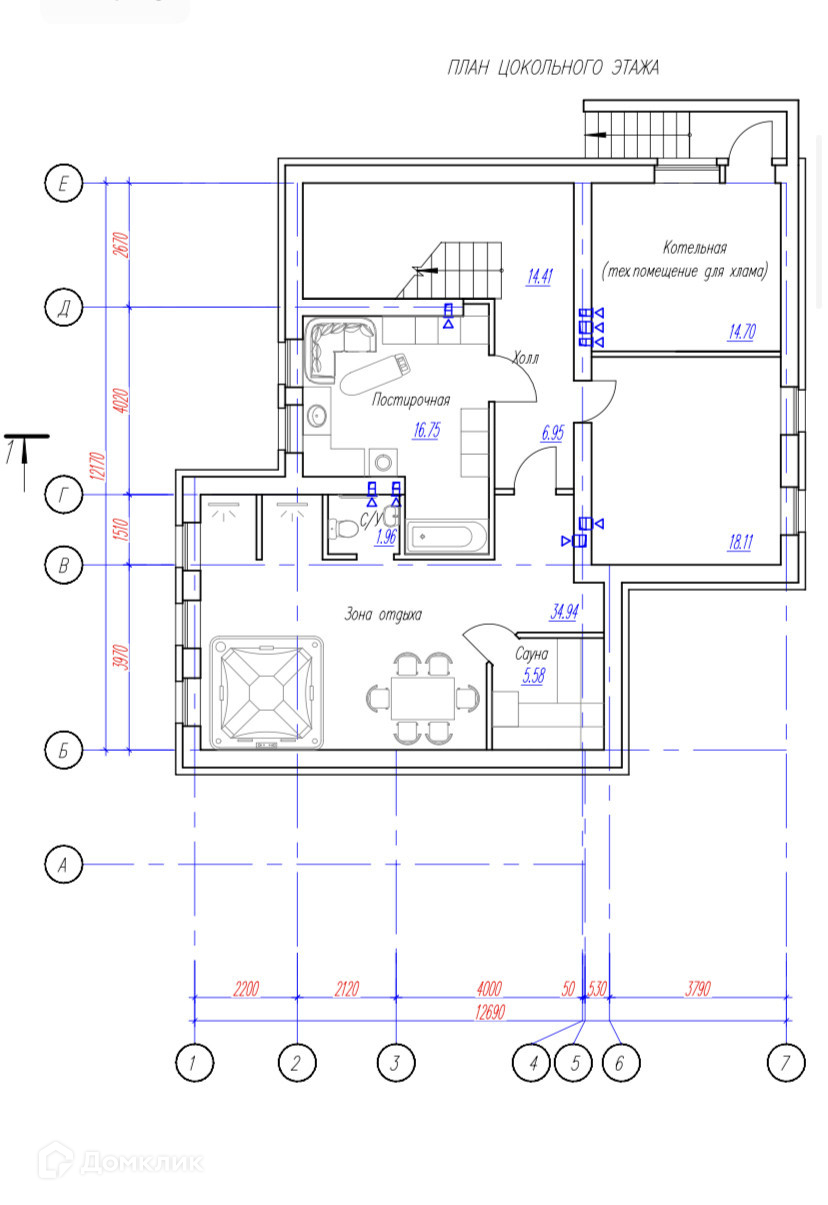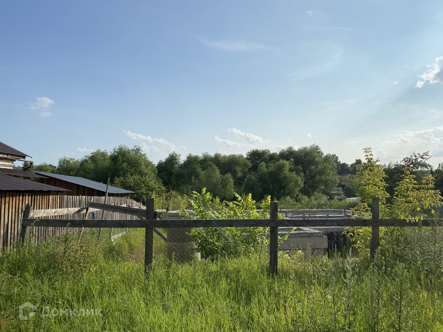 На участке заложен фундамент под дом из железобетонных блоков (глубина 5 блоков под полноценный цокольный этаж) площадью около 120 кв.м. (10*12). Проект полностью разработан. Планы и эскиз на фото. Скважина.