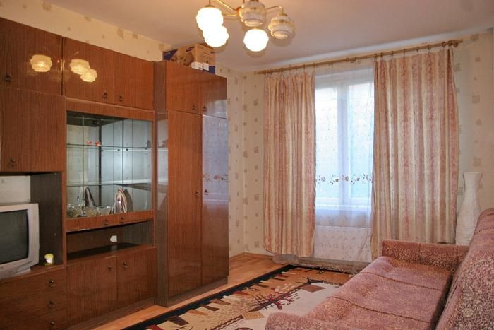 В квартире два раскладных дивана .кухонная мебель .шкаф .тумбочки .стиральная машина .холодильник .