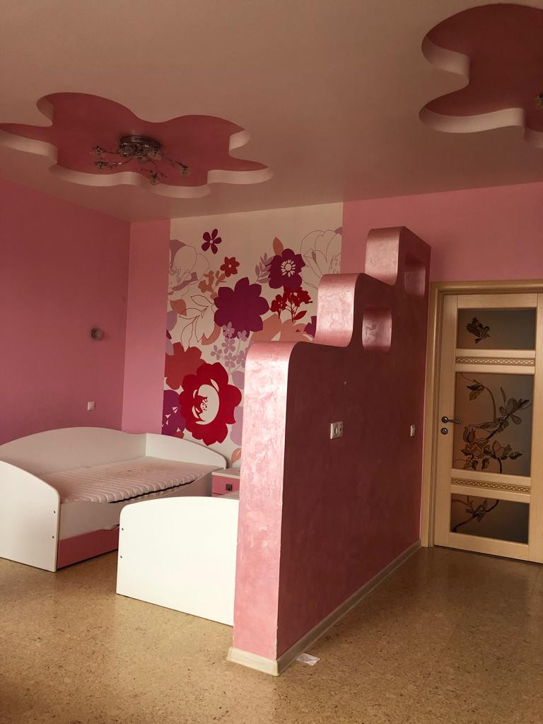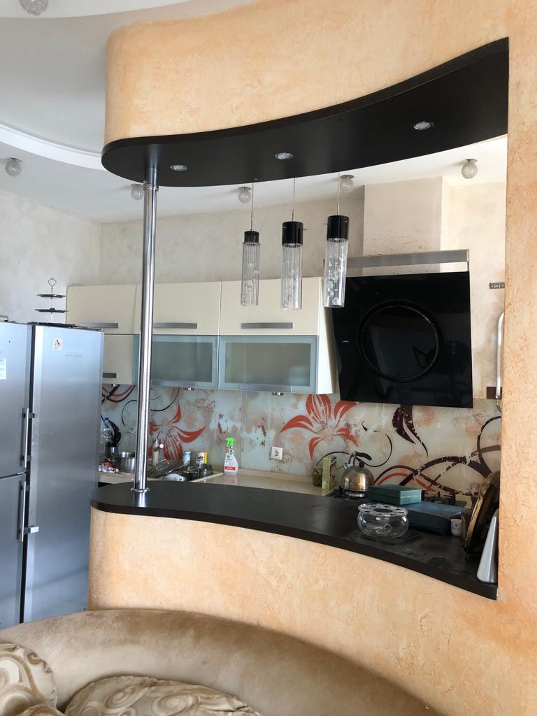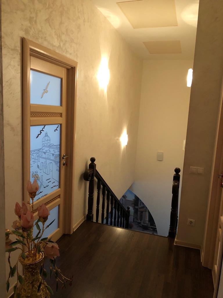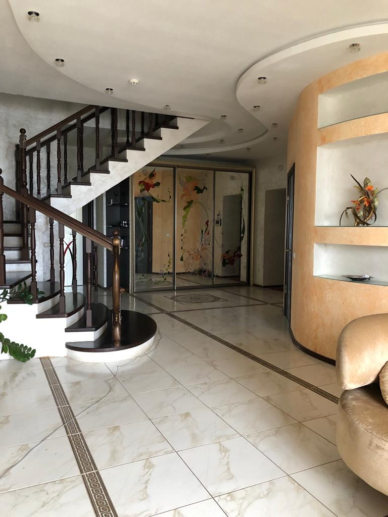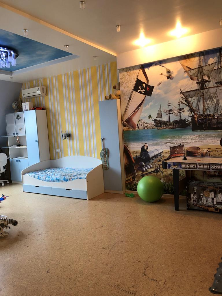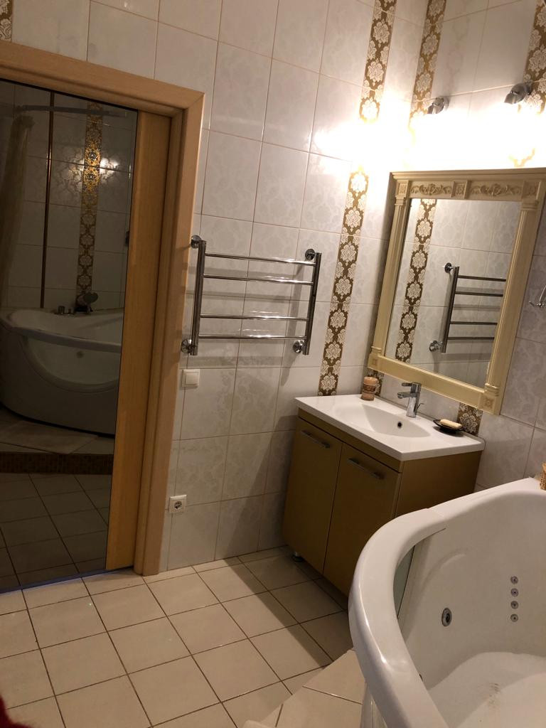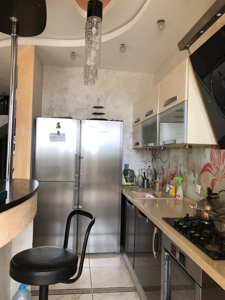 В квартире сделан качественный ремонт. На первом этаже расположена кухня- гостиная, санузел, на втором этаже – спальня, детские комнаты, в каждой комнате свой сан.узел (в квартире 4 сан.узла). Квартира с мебелью, с техникой.