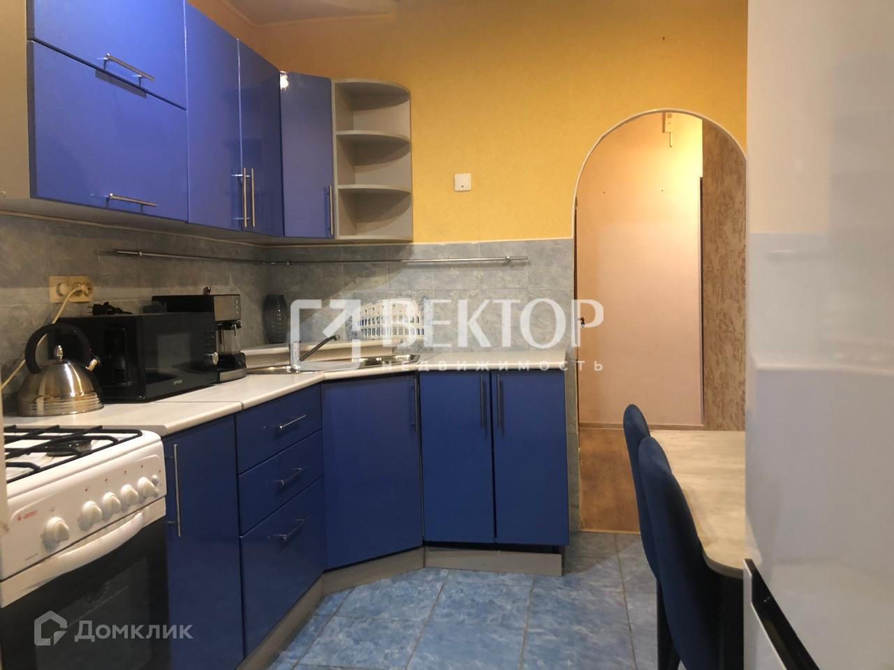 Из мебели: диван, стенка, кухонный гарнитур, стол, стулья, прихожая, холодильник, стиральная машина, микроволновая печь, кофемашина.