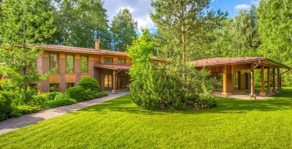 Дом полностью кирпичный, с внешней отделкой из клинкерной плитки ручной формовки и сибирской лиственницы. Отопительная система выполнена медными трубами, установлены радиаторы. Тройные стеклопакеты для сохранения тепла