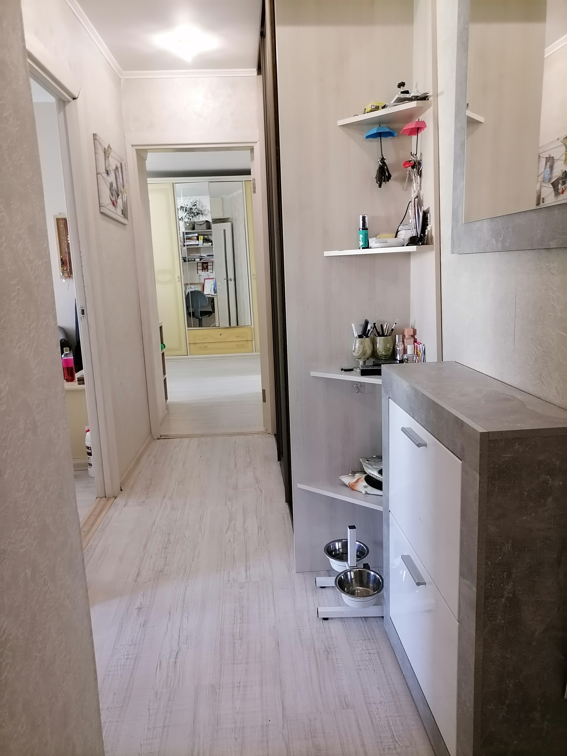 Очень уютная, светлая, тёплая квартира, с отличной планировкой "распашонкой", общей площадью 54.7 кв м., со свежим ремонтом, сделана по полу и потолку шумоизоляция. В квартире остаётся  встроенная кухня с хорошей печью и посудомоечной машиной BOSH и удобный шкаф - купе в коридоре. Балкон - застеклён, обит вагонкой.