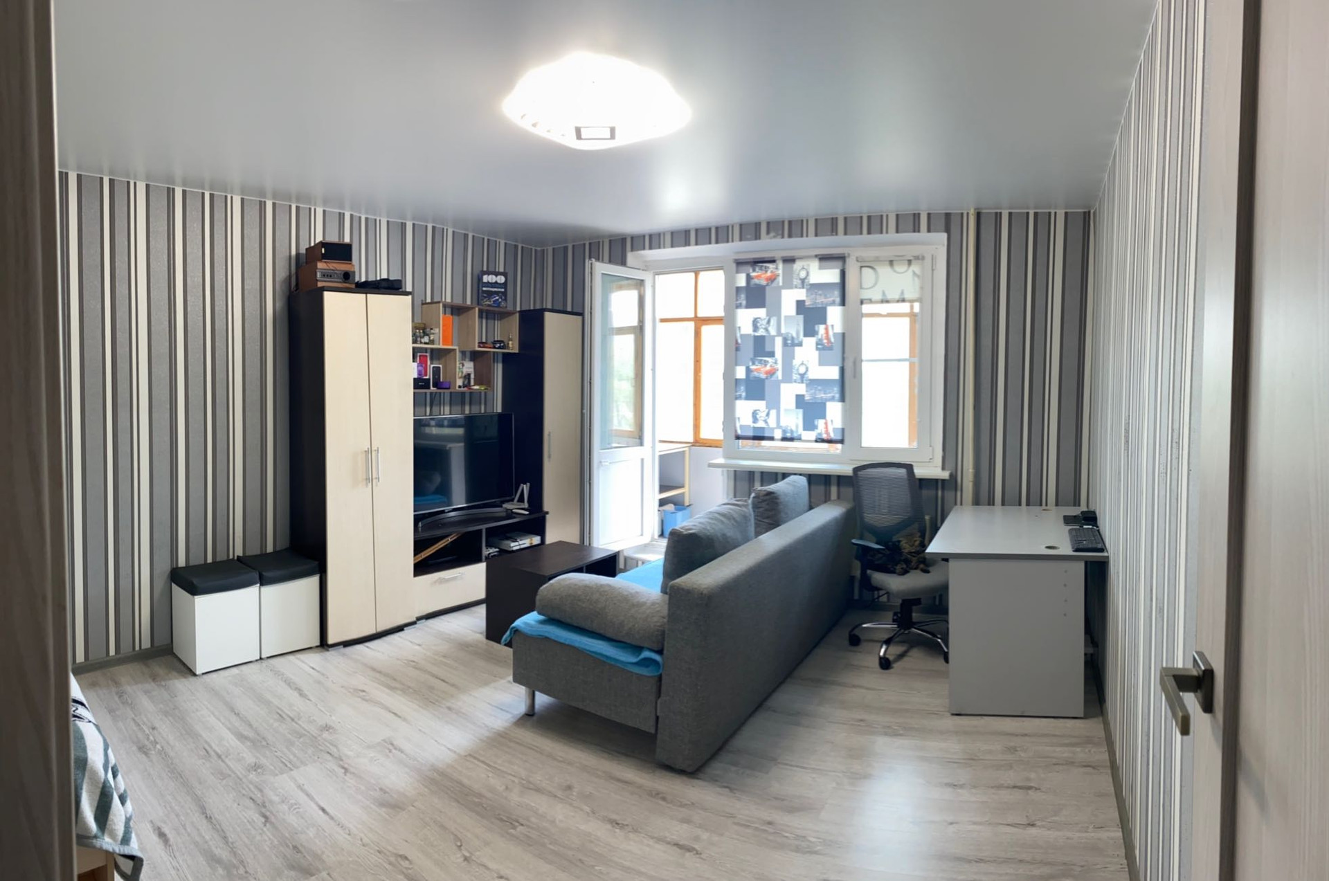 В квартире сделан хороший ремонт ( санузел осталось доложить плитку ( она присутствует куплена). Вся необходимая мебель останется новым собственникам по необходимости.