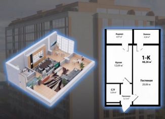 Однокомнатная квартира на продажу, 49 м2, улица Джабраилова, 5