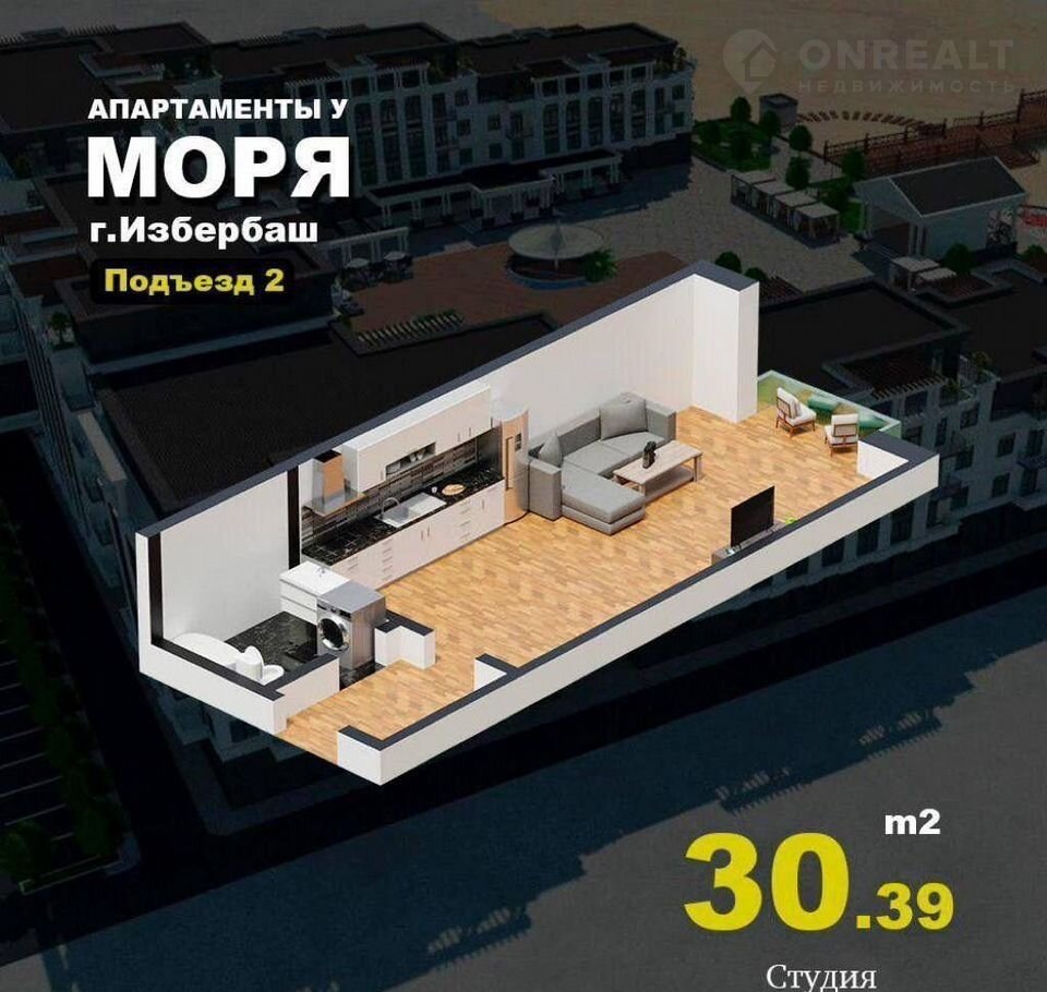 Квартира студия, 30.6 м2, этаж 3 / 11, на продажу в Избербаше, ДНП Волна, 21