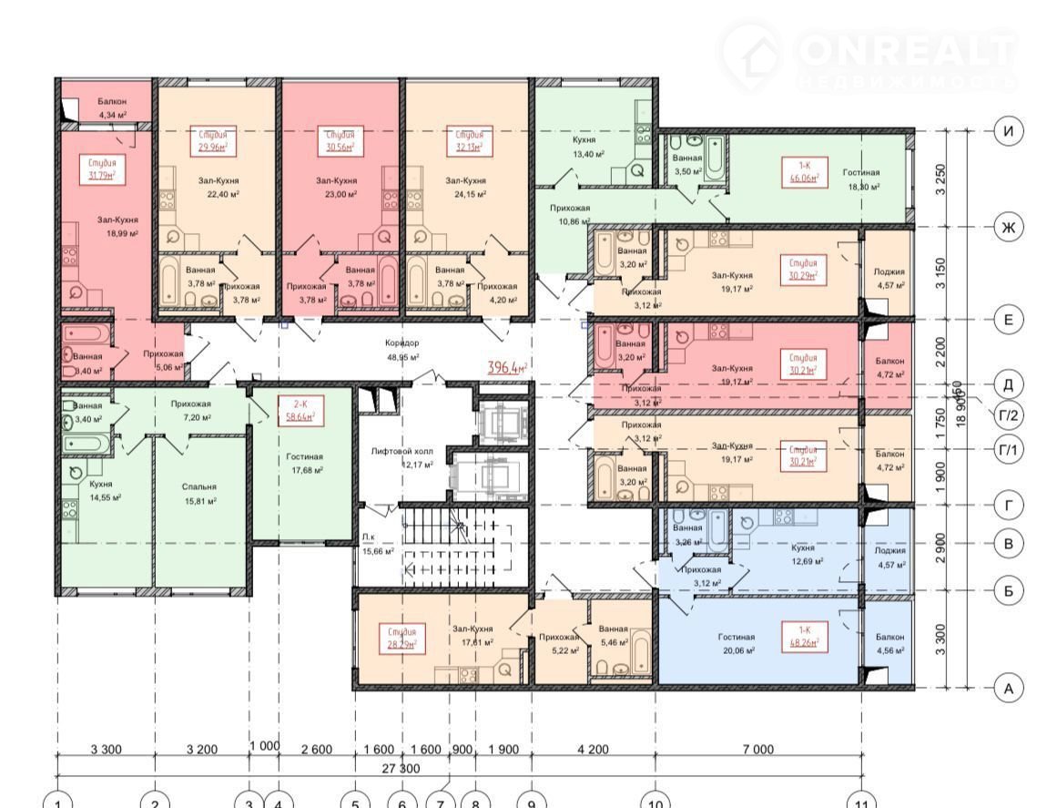 Рaзнообразные плaнировки: студии oт 28 кB дo двушек 60 кB.