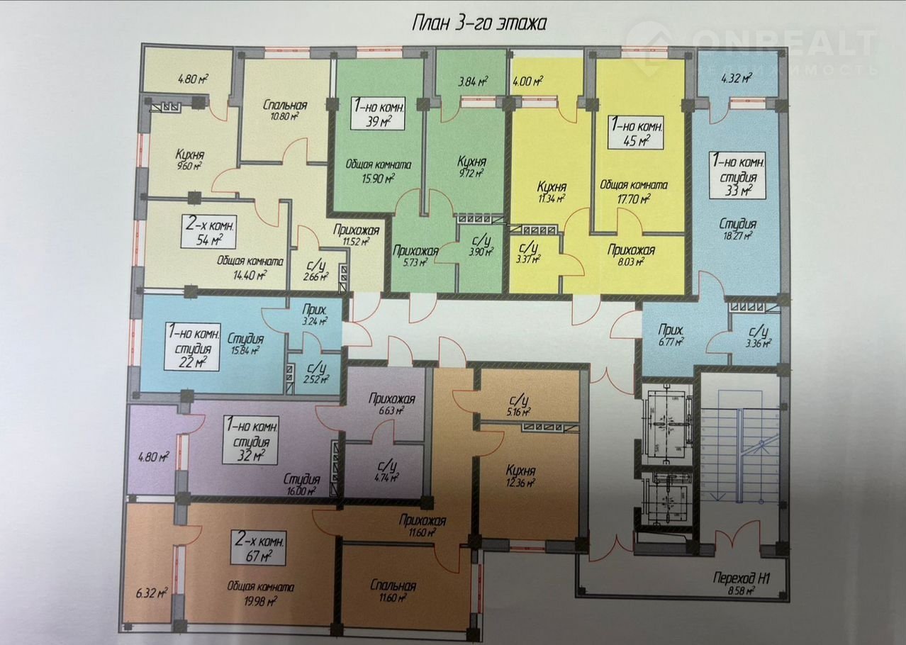 Общая площадь 54 м2