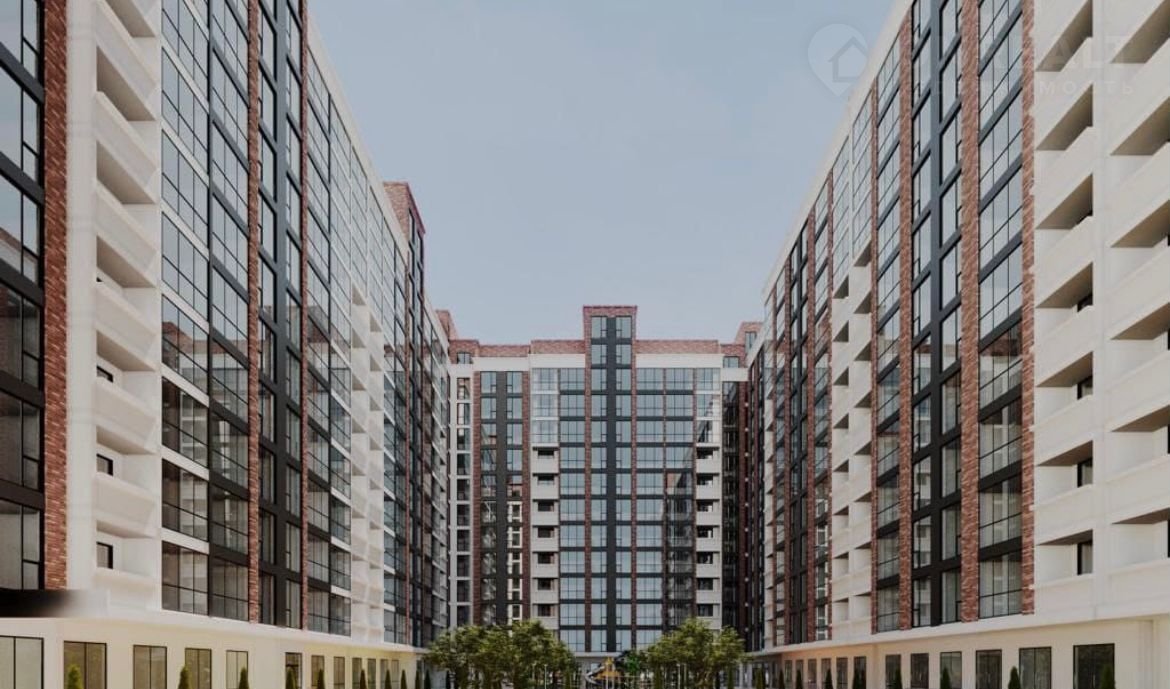 •  Coвpемeнный 13-этажный дом с красивым фасадом и балконами.