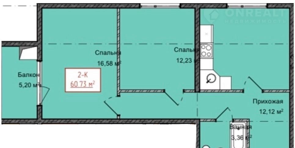 Общая площадь 60.7 м2