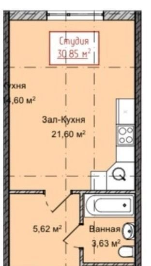 Общая площадь 30.9 м2