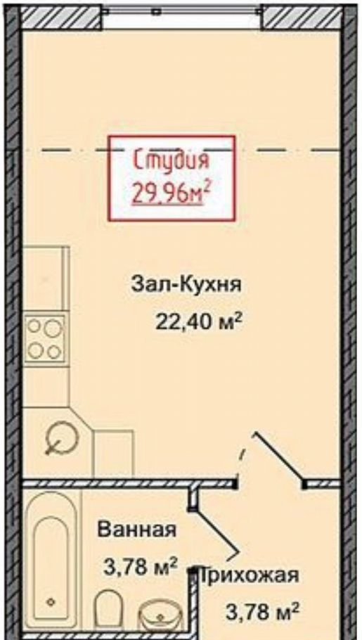 Общая площадь 30 м2