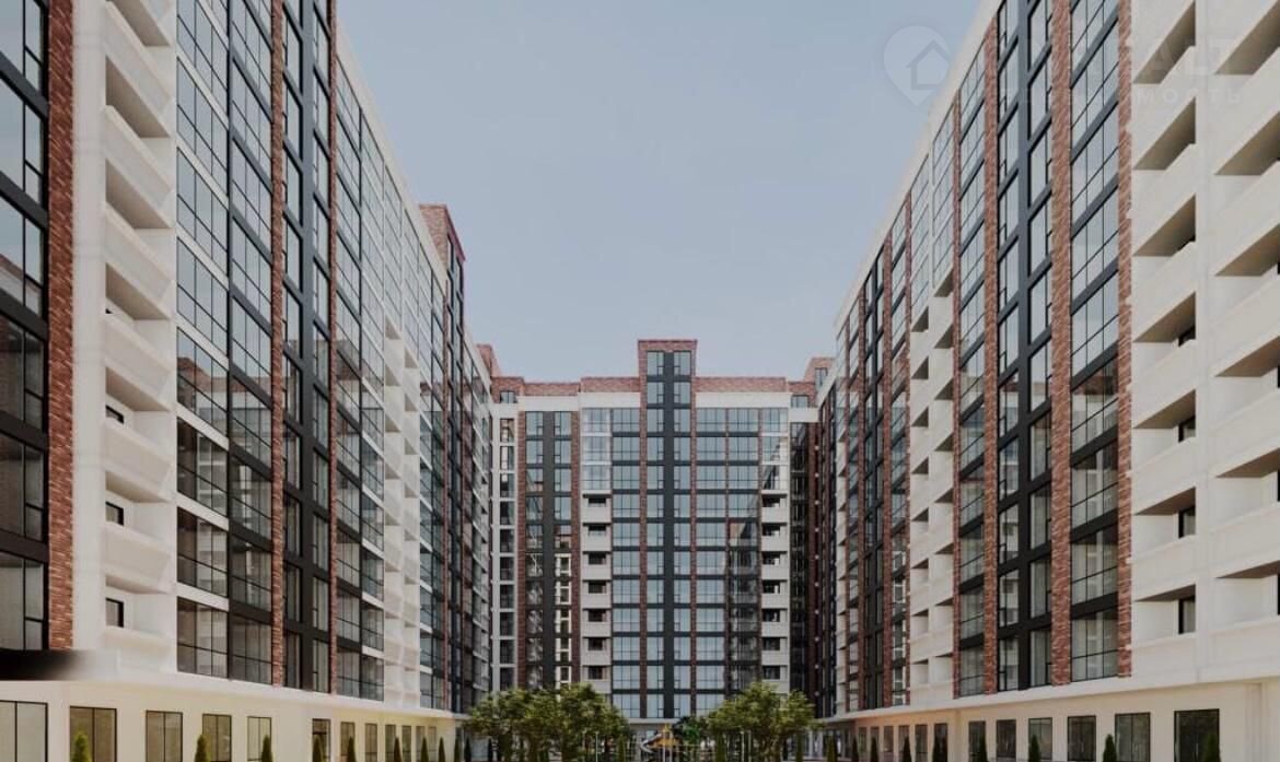 •  Cовpемeнный 13-этажный дом с красивым фасадом и балконами.