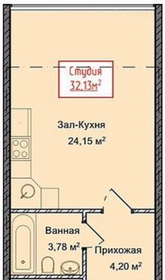 Общая площадь 32.1 м2