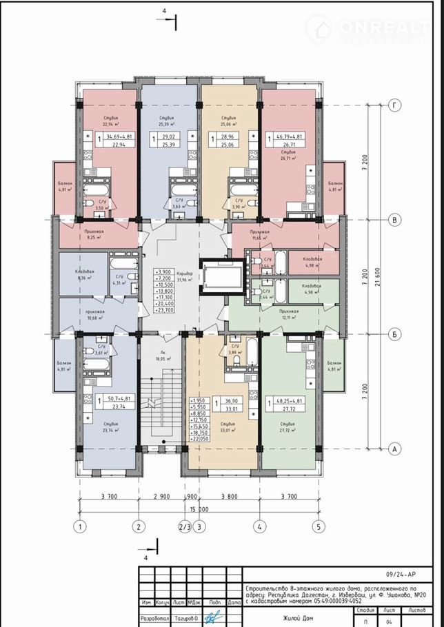 Квартира студия, 23.7 м2, этаж 3 / 8, на продажу в Избербаше, улица Ушакова, 20
