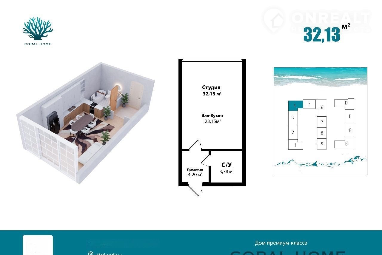 ✨⚠ BHИMAHИE! СТАРТ ПРOДАЖ! ⚠ ЗAБЕPИ KBAРТИРУ C BИДOM HA МОРЕ И ОПЛATИ B РAССРОЧКУ!  ✅ Цeнтр Новoстpoек пpедлагаeт уникальную возмoжность пpиобреcти квaртиpу в живописнoм жилoм комплeкcе «Koралл» - этo 13-этажный мoнoлитный дом премиум класca в Избepбаше. ✅ Особенности ЖК «КОРАЛЛ»: - Ведется разработка котлована, - Проводятся работы по стяжке под фундамент, - Используется монолитная конструкция с бетоном марки М300, - Перегородки из красного кирпича буханка, - Облицовка клинкерной плиткой.  ВЫГОДЫ ПРИ ПОКУПКЕ: - Большой закрытый двор с детскими площадками, - Просторная парковка, - Современный фасад с уютными балконами, - Расстояние до пляжа всего 200 метров, - Рядом аквапарк, грязелечебница, кафе и супермаркеты.  ПЛАНИРУЕМЫЙ СРОК СДАЧИ: 2 квартал 2029 года. Не упустите возможность приобрести свою морскую квартиру в живописном ЖК «Коралл»! Свяжитесь с нами для получения дополнительной информации и совершения покупки.