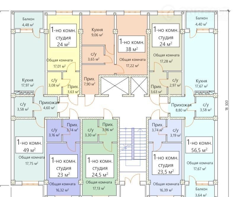 Общая площадь 38 м2
